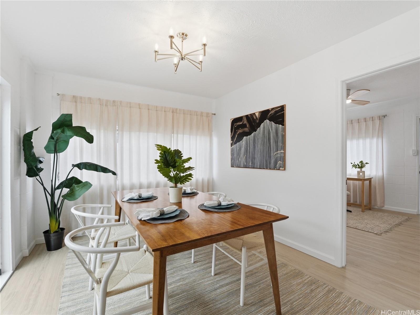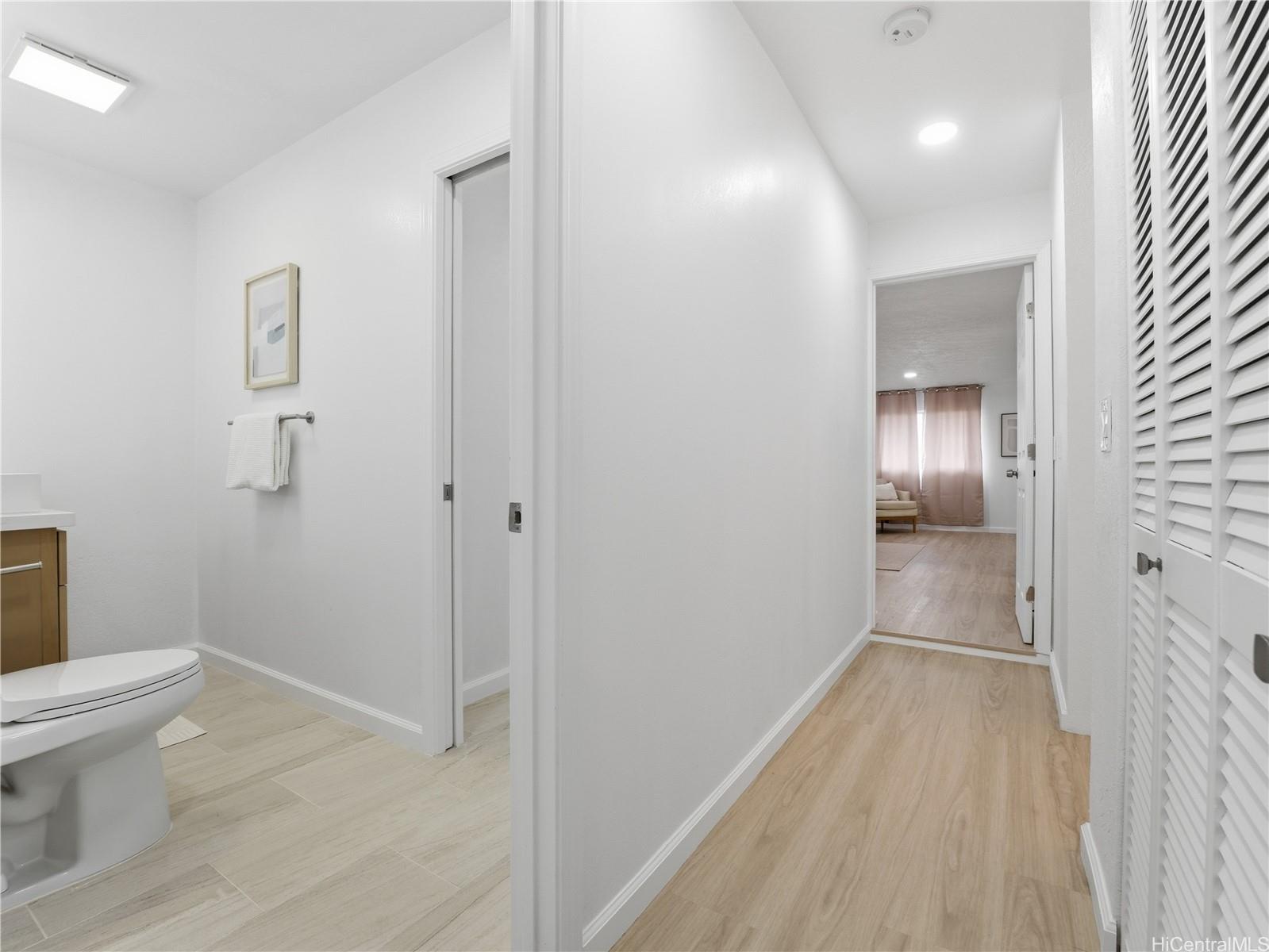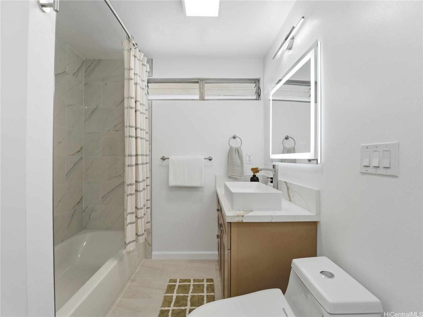 A rare combination of scale, sophistication, and value, this fully renovated 6-bedroom residence delivers modern luxury living just 1 block from Pearl City Shopping Center and is priced below appraised value! Intentional design throughout, the home offers an expansive, light-filled interior finished with timeless tones and enhanced by striking contemporary lighting. Open-concept layout flows effortlessly into a chef’s kitchen featuring quartz waterfall-edge countertops, custom cabinetry, & premium appliance package. The first level includes a bedroom and full bathroom, providing flexibility for guests or multigenerational living. Upstairs, the spacious 324 sq ft primary suite serves as a true retreat, complete with a walk-in closet. In total, the home features three walk-in closets, offering exceptional storage and organization. Sleek bathrooms feature LED backlit mirrors, modern fixtures & luxury washlets for elevated comfort. Split AC, 42 photovoltaic panels and parking for 5. Blending modern elegance, thoughtful functionality in a highly convenient location near shopping, dining, and daily essentials, this exceptional home stands out as a rare opportunity in today’s market.