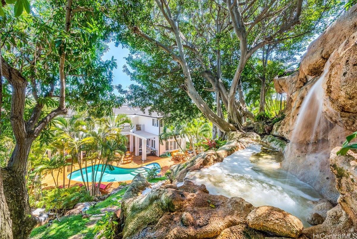 Nestled on a quieter street in one of the most sought after neighborhood in Honolulu, this Kahala mini oasis awaits you. Gated and private, this multi-level, spacious, upgraded home is perfect for a growing number of occupants. Inviting kitchen and free flowing floor plan with two living rooms and dinning room open to the back yard indoor / outdoor living and perfect for entertaining. There are five bedrooms all located on the upper levels. There is an attached 1br/1ba guest room complete with a wet bar which is perfect for visiting guests. Relax around or in the pool and hot tub. The manmade cascading waterfall creates a tranquil ambiance, allowing your mind to unwind and your senses to rejuvenate. Amidst the lush greenery and soft rustle of leaves, the waterfalls’ melody offers a perfect backdrop for moments of peace and reflection. The oversized two car garage offers extra storage space. A must see.