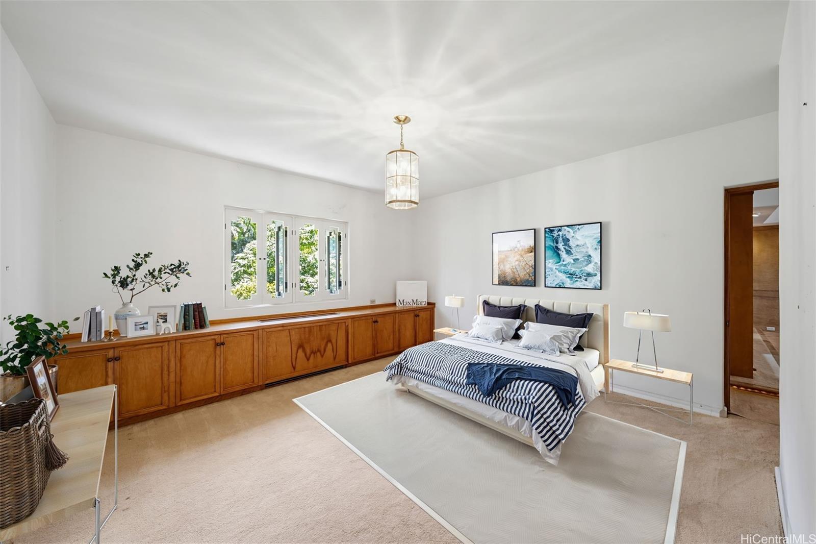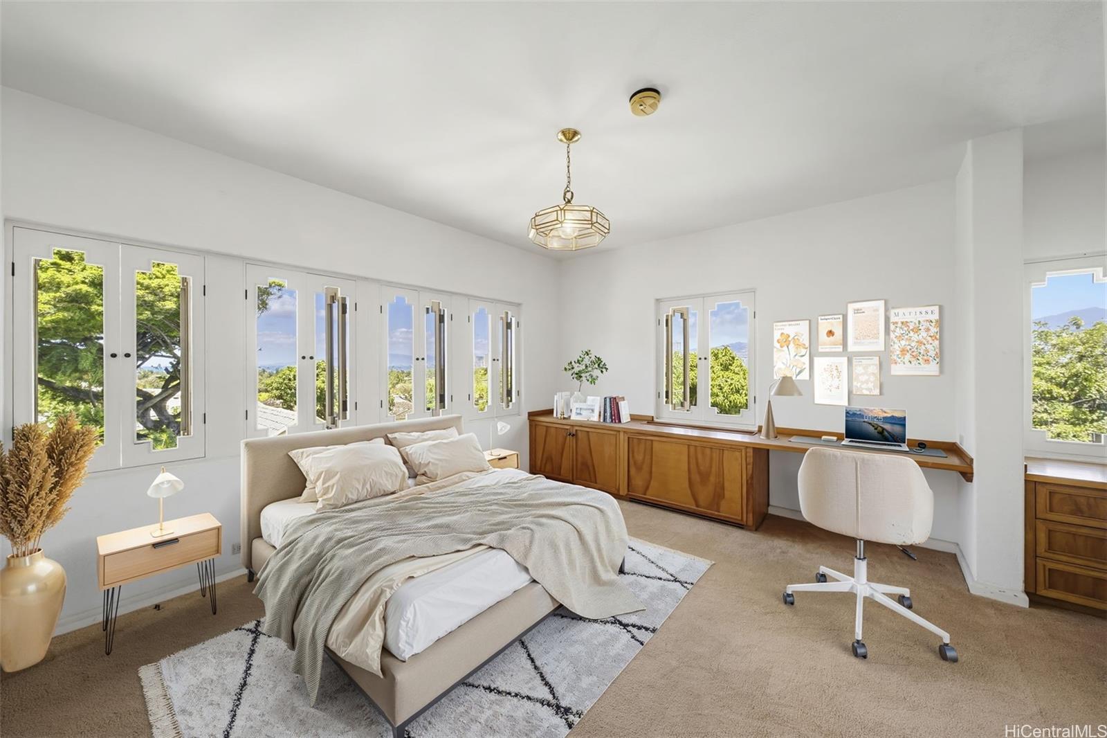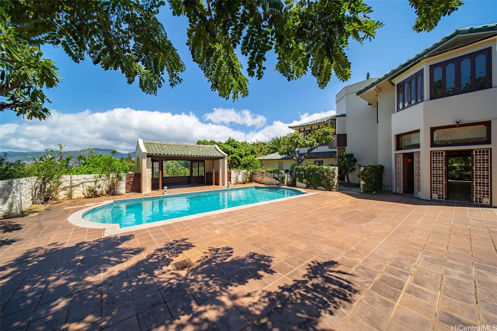Location, beauty, and privacy come together in a unique estate nestled on the slopes of Diamond Head. This one-of-a-kind Noela Drive villa was originally built in 1934. It seamlessly integrates indoor and outdoor living with an Asian-inspired open floor plan, showcasing captivating views of ocean, Diamond Head and the city. Featuring 4,542 square feet of interior living space built on a 23,148 square feet corner lot of land, this architecturally striking estate offers 6 bedrooms and 4.5 bathrooms. On the main floor, there’s a living room, family room, dining room, one bedroom, a caretaker’s room, library/media room. The second floor features a spacious primary bedroom and two additional bedrooms. The living room and dining room open to a spacious outdoor pavilion – the ideal space for entertaining or relaxing poolside. From hand painted ceilings to the intricate staircase, doors, and windows, every detail of this estate (formerly owned by Randolph Crossley) is thoughtfully crafted of the highest quality, creating a custom residence – waiting for its new owner to bring it to life again.