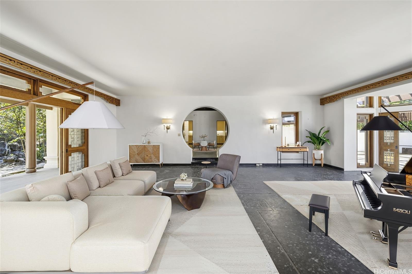 ダイヤモンドヘッドの斜面に佇むこのユニークな邸宅は、絶好のロケーション、美しい景観、そしてプライバシーを兼ね備えています。 ノエラ・ドライブにあるこの唯一無二のヴィラは、1934年に建てられました。 アジア風のオープンな間取りにより、屋内と屋外の生活空間がシームレスに融合し、海、ダイヤモンドヘッド、そして街並みの魅力的な景色を一望できます。 23,148平方フィートの角地に建ち、4,542平方フィートの居住スペースを誇るこの建築的に際立った邸宅は、6つのベッドルームと4つのバスルームを備えています。 バスルームが5つ。 1階には、リビングルーム、ファミリールーム、ダイニングルーム、寝室1室、管理人室、図書室兼メディアルームがあります。 2階には広々とした主寝室と、さらに2つの寝室があります。 リビングとダイニングは広々とした屋外パビリオンへとつながっており、ゲストをもてなしたり、プールサイドでくつろいだりするのに最適な空間です。 手描きの天井から、精巧な階段、扉、窓に至るまで、この邸宅(かつてランドルフ・クロスリーが所有していた)のあらゆる細部は、最高品質の素材を用いて丹念に作り上げられており、新たな所有者が再び息を吹き込むのを待つ、オーダーメイドの住まいとなっています。 .