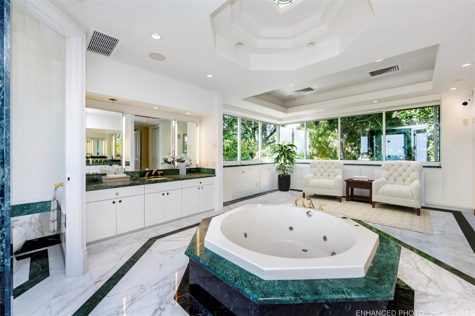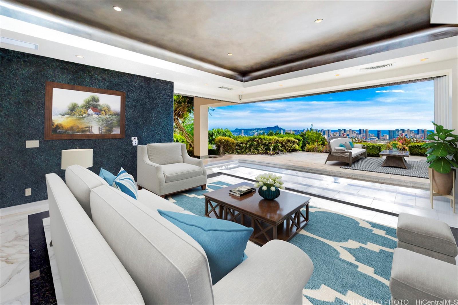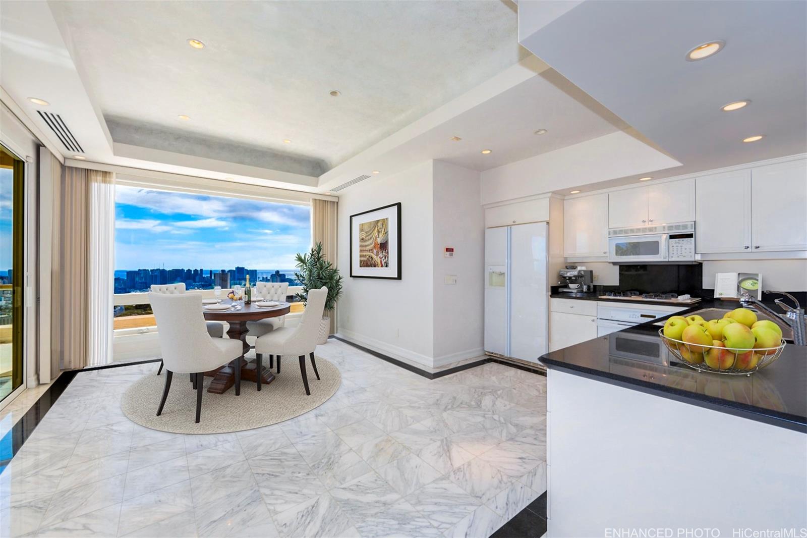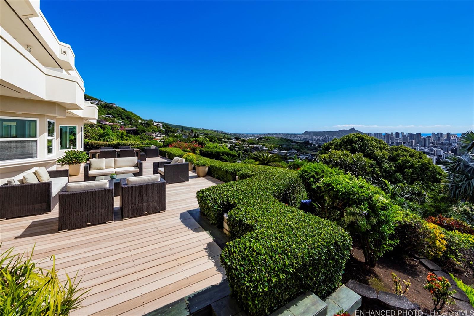 Discover an exceptional private sanctuary, nestled along Makiki Heights Drive, where breathtaking Pacific Ocean views stretch from Diamond Head to Waikiki to Downtown Honolulu. Gated entry, a large motor court, & 4-car garage welcome you home; step inside & find a commanding 6-bedroom, 8,323 sq.ft. luxury residence featuring a grand 2-story main living area, maid’s quarters, wine cellar, formal dining room, multiple pocket doors & lanai access points, & much more. A serene outdoor world awaits, with walking paths, secret gardens, & secluded spaces nestled among tropical landscaping, herb gardens, flowering foliage, & old-growth Longan, Avocado, & citrus trees. This sale represents a one-of-a-kind opportunity to own a legacy large-parcel residence with unobstructed vistas of Oahu’s iconic scenery & destinations. Situated minutes to urban Honolulu, fine dining, boutique shops & daily needs, plus near-endless options for beach activities & entertainment. Welcome home to 2443 Makiki Heights Drive. Listing includes enhanced, virtually staged and zoomed-in photos.