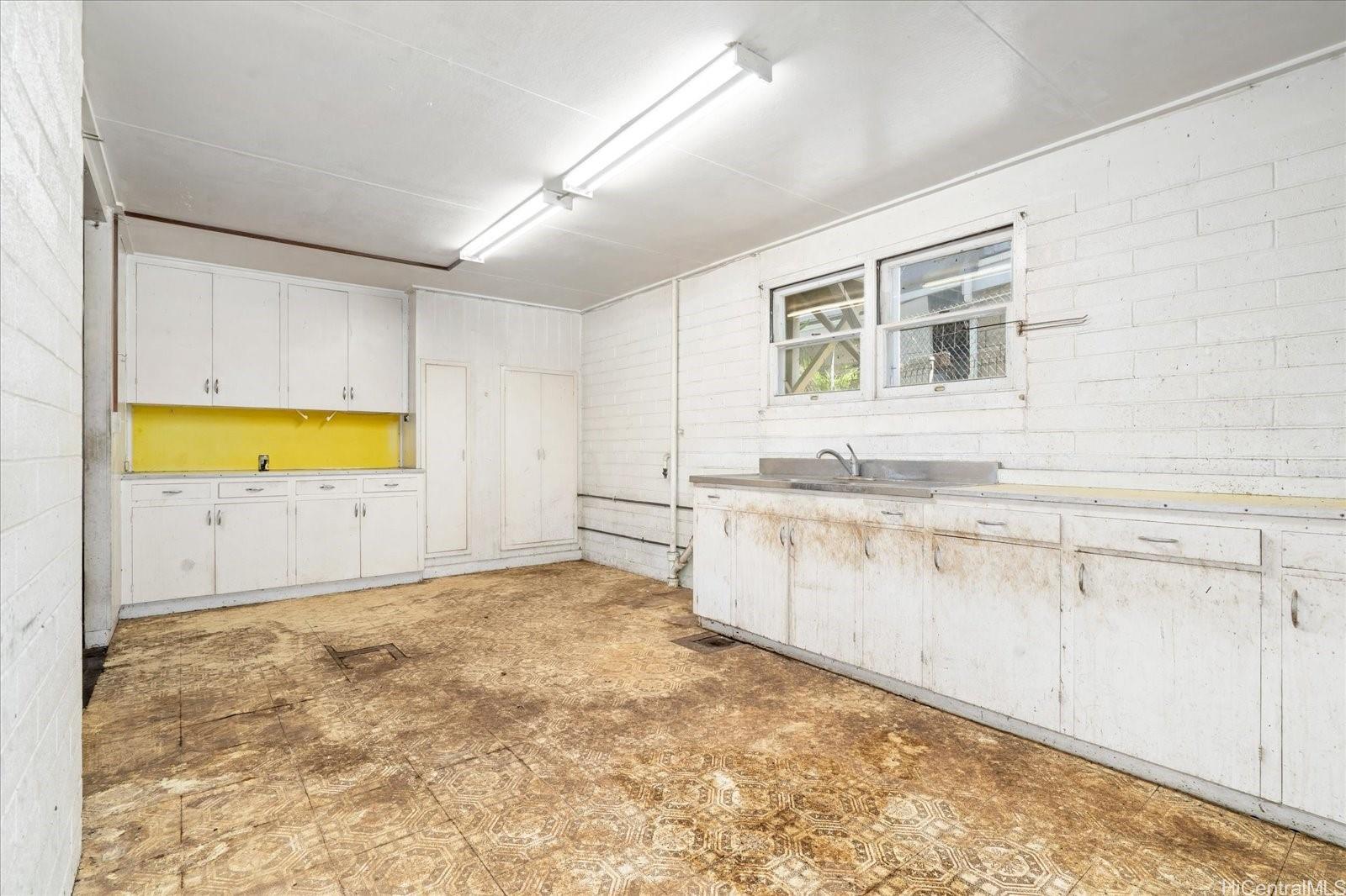 Convenient lower Kalihi location! This property offers limitless possibilities—whether you choose to renovate or build new. This sale also includes TMK 1-1-3-004-129-000, featuring Hanu Lane, an access easement, plus a carport, storage sheds, and a garden area, bringing the total land area to 9,541 square feet. The home and storage sheds are being sold strictly in “As-Is” condition.