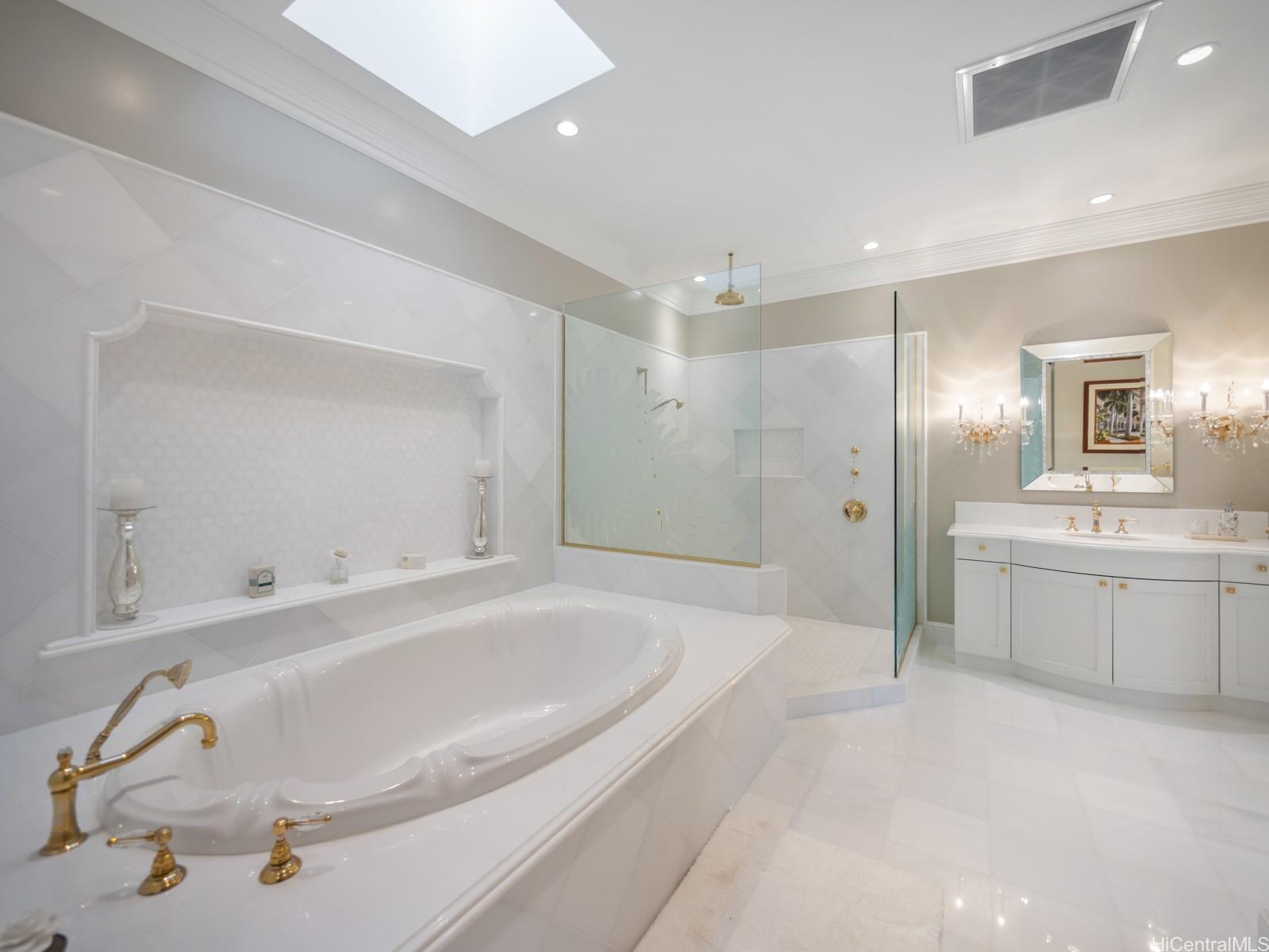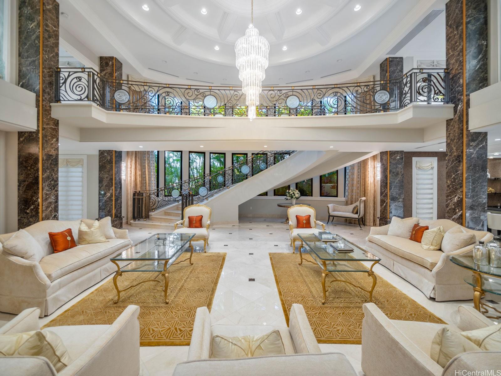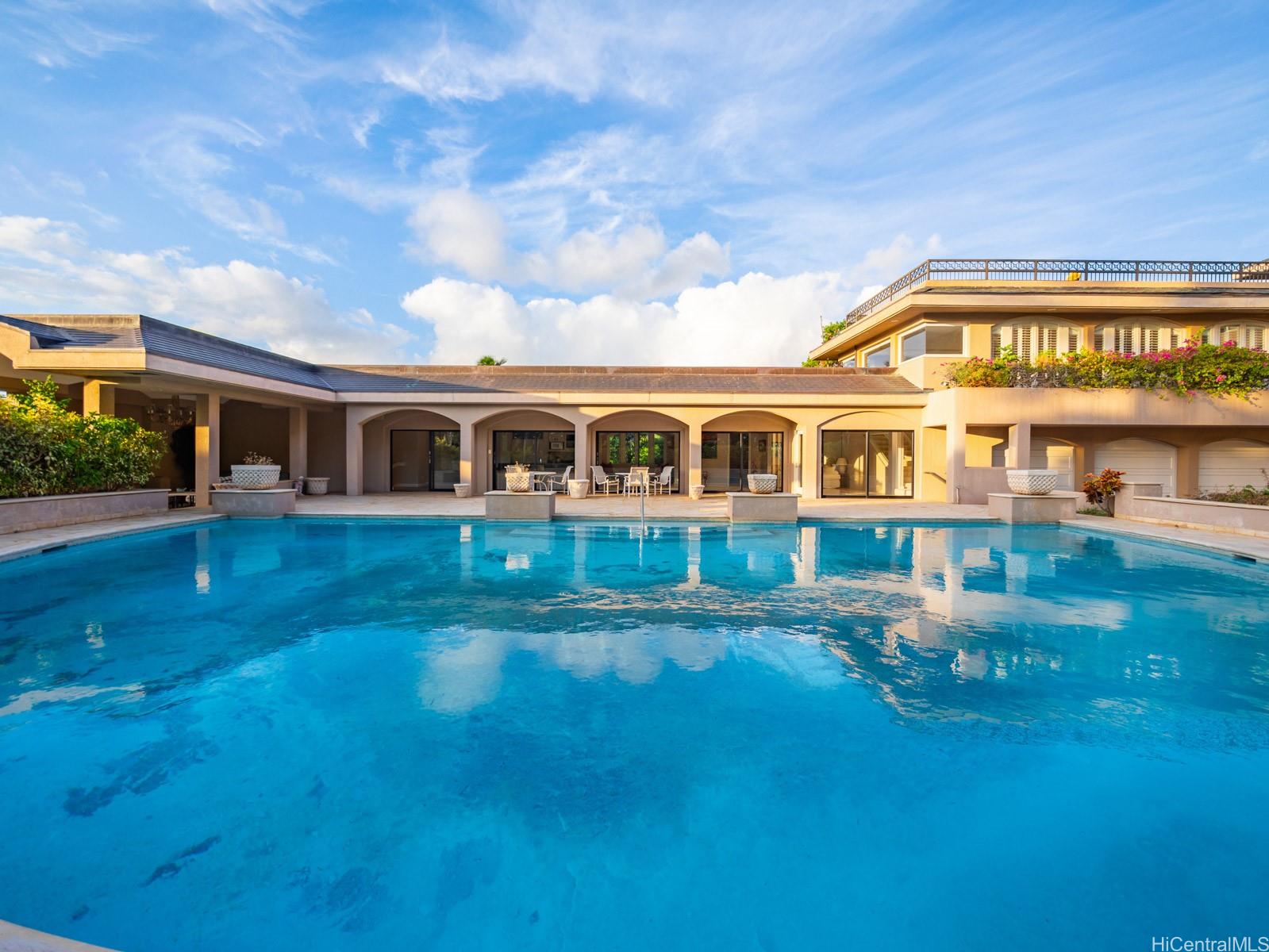 Welcome to the private, gated “DIAMOND HOUSE” a truly one-of-a-kind masterpiece in Hawaii! This luxurious mansion offers over 16,000 sq. ft. sophisticated living space with 8 bedrooms, 9 full bathrooms, and 2 half bathrooms. The estate is designed for the ultimate in luxury living, with a dramatic tropical landscape showcased as living art – complete with a half-moon fountain pool and a cascading custom waterfall. Highlights include:Grand princess staircase leading to a primary suite with breathtaking ocean, Diamond Head and Waikiki views. Swarovski chandeliers and exquisite imported finishes throughout,3000+ bottle wine cellar for collectors, butler’s pantries & wet bars for refined entertaining, 4-car garage + 6 driveway spaces for ultimate convenience when your guests arrives. Beyond the home itself, enjoy the serenity of your private paradise – hiking among plumeria, listening to Hawaiian birdsong, and watching butterflies drift through the gardens. This iconic estate was crafted by the legendary developer Jack Myers, blending timeless elegance with unmatched craftsmanship. Gated entry ensures both privacy and security for your family and guests. Don’t miss this opportunity!