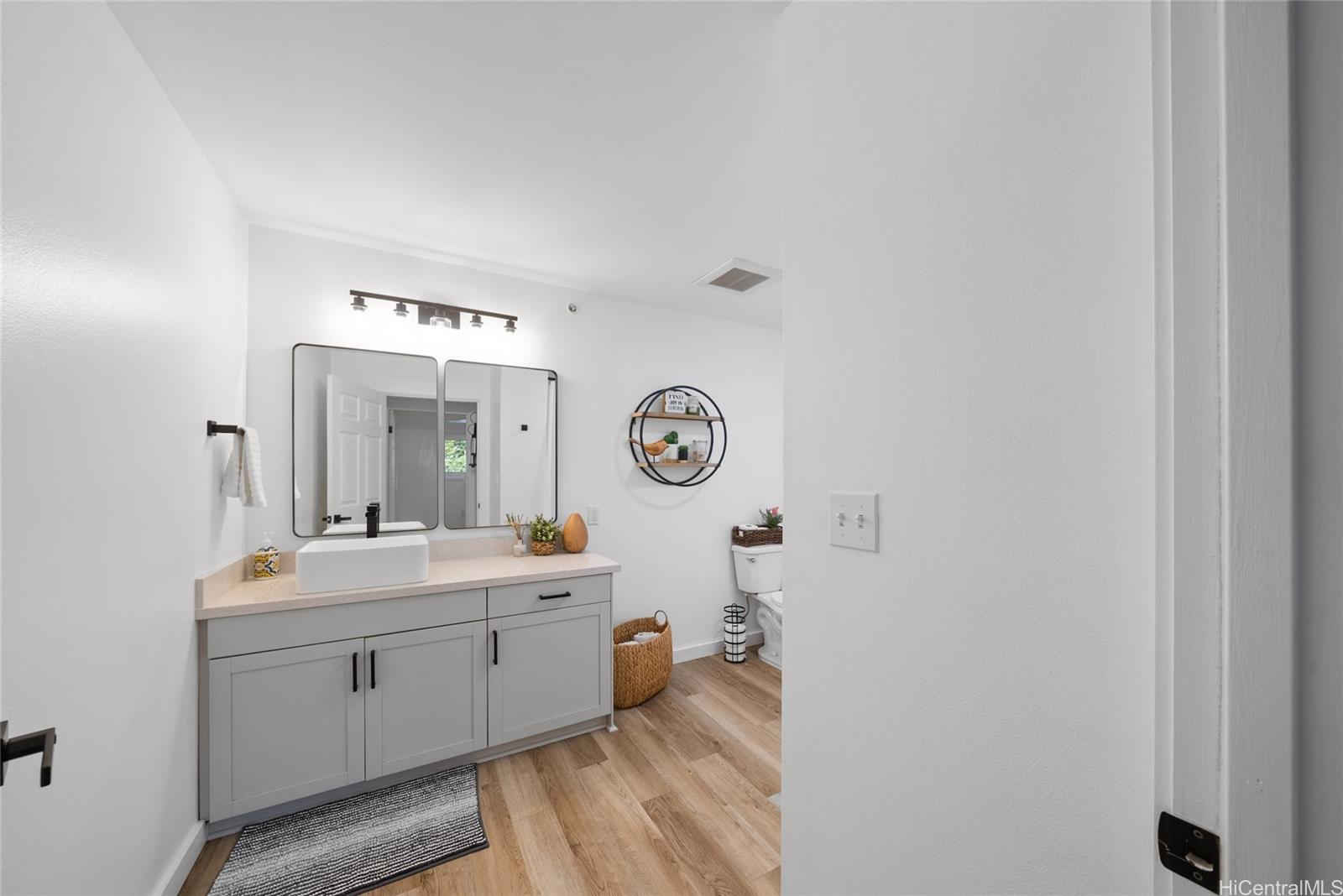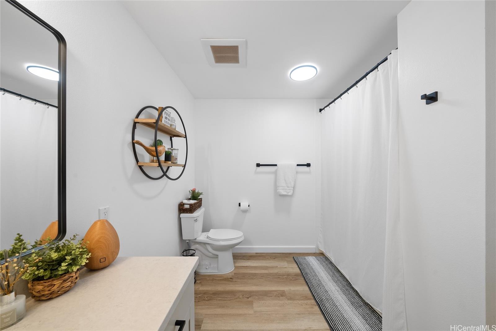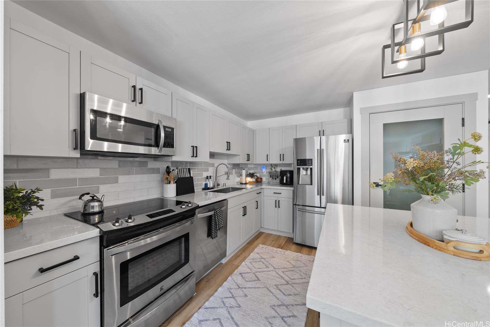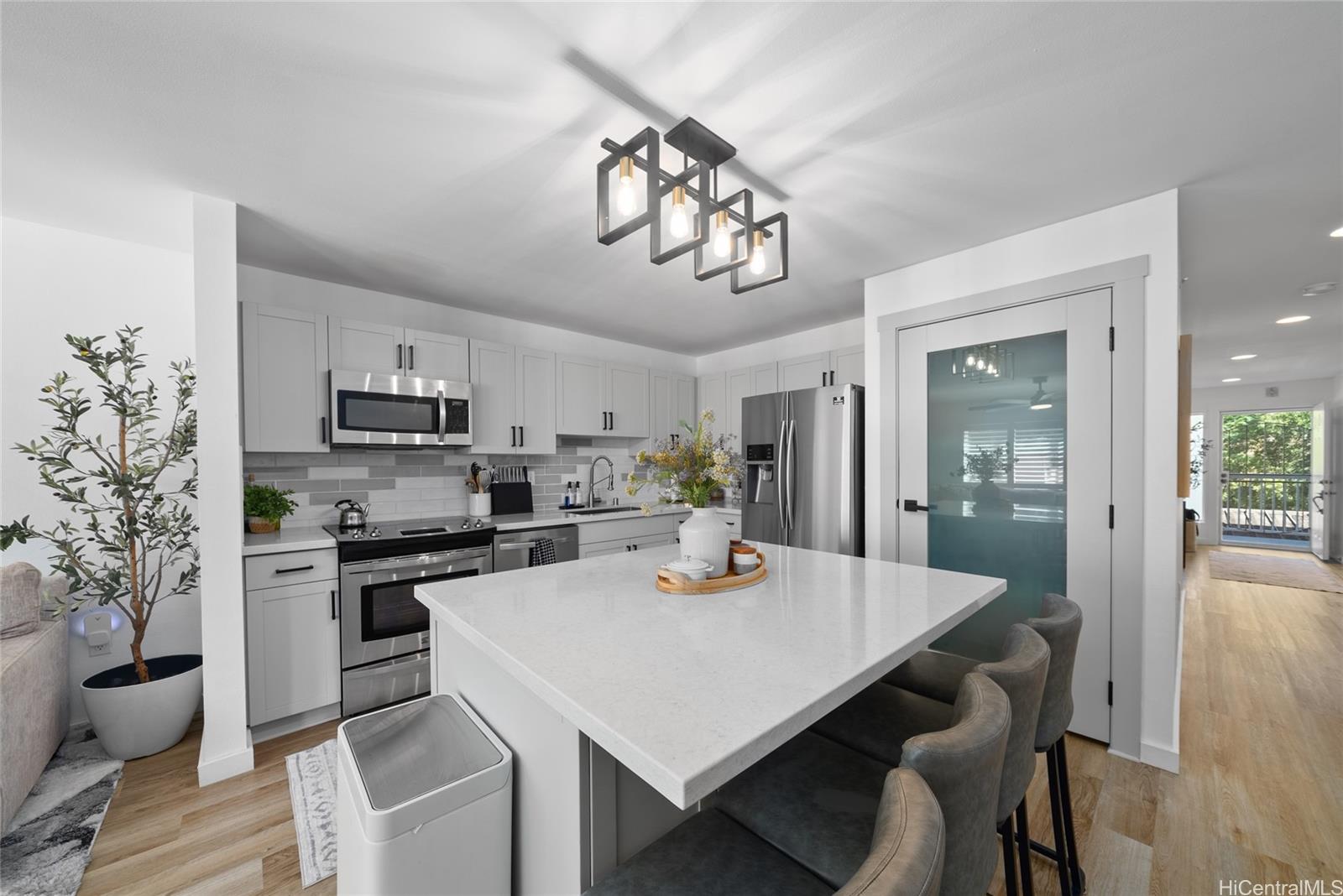 **MOTIVATED SELLER WILL PAY FOR 12 MONTHS WORTH OF MAINTENANCE FEES** RECENT PRICE IMPROVEMENT! 3-bed, 2-bath unit in Waikalani Woodlands! Located 25 minutes from the North Shore/Haleiwa/and Waialua, 5-10 minutes from Scholfield & Wheeler AFB. Designed for convenience & comfort, this home includes a full washer/dryer in the unit, split air-conditioning, all-new flooring, new recessed LED light fixtures, 2 year old water heater, & ceiling fans in all rooms. All bathroom and kitchen countertops have been replaced with quartz. The layout is well suited for a variety of living arrangements, including roommates, multi-generational living, or rental income potential. The 2 bedrooms & large full bathroom is just after an entry way, keeping the primary bedroom and en-suite bathroom at the other end of the unit. The living area provides comfort sharing the space with the large “open” kitchen. 2 parking spaces available (covered and uncovered), elevator & staircases near the parking spaces. Other neighborhood highlights include the complex being situated at the end of Waikalani Drive which results in low traffic & a quiet environment near the Melemanu gate.
