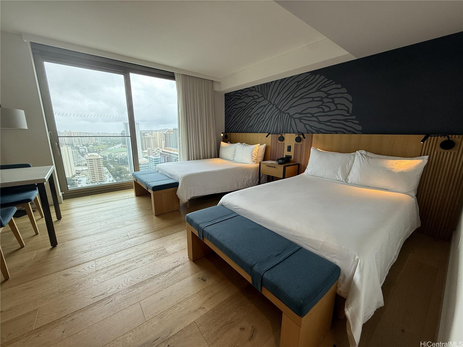 High-floor luxury studio at Sky Ala Moana East offering stunning panoramic views of Diamond Head, ocean, city, and mountains. This 388 sqft fully furnished residence features modern finishes and ADA-compliant design elements for enhanced accessibility and convenience. Ideal for investors or part-time owners, the unit offers flexible usage options including personal residence, hotel rental program participation, or both. Located in the heart of Ala Moana near shopping, beaches, dining, and entertainment. Enjoy resort-style amenities including pools, fitness center, spa, valet service, and on-site dining. A rare opportunity to own in one of Honolulu’s newest luxury condotel residences.