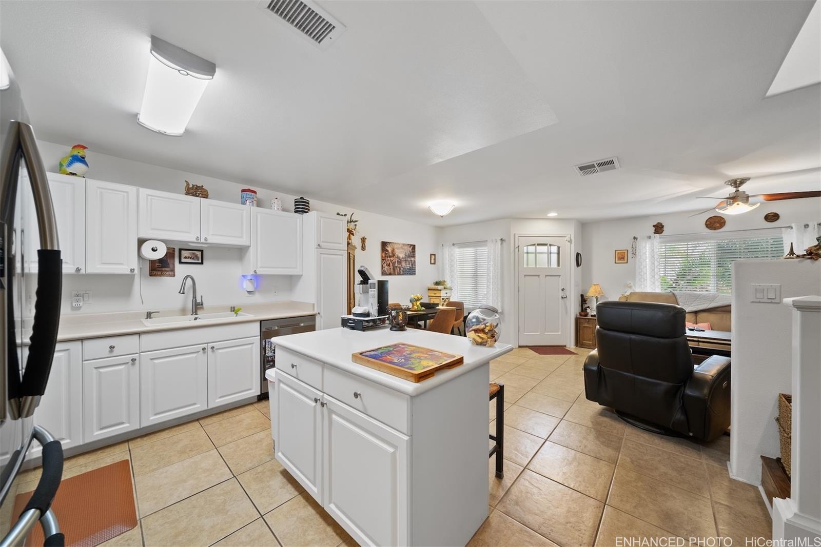 Don’t miss out on this unbeatable deal in the highly sought-after Spinnaker community! This charming two-story townhouse boasts a desirable floor plan with seamless flow between the living room, dining area, and beautifully kitchen. Featuring 3 spacious bedrooms, 2.5 baths, and a generous 2-car garage, this home is perfectly located in Ewa Beach, just off the main roads for added privacy. Upstairs, the home’s 3 bedrooms and 2 full bathrooms offer comfort and convenience, including a large primary bedroom with its own ensuite bath and walk-in closet. Additional storage space is available at the top of the stairs. Enjoy refreshing cross breezes through open windows or stay cool with central air conditioning throughout the home. The private, fenced-in yard is beautifully landscaped and ideal for outdoor entertaining, and the community amenities include a pool, hot tub, and BBQ area, all just one block away. With ample guest parking available throughout the complex, you’ll never have to worry about finding space. Spinnaker offers a prime location close to Laulani Shopping Center, the new Wai Kai community, top-rated schools, parks, restaurants, and pristine beaches.