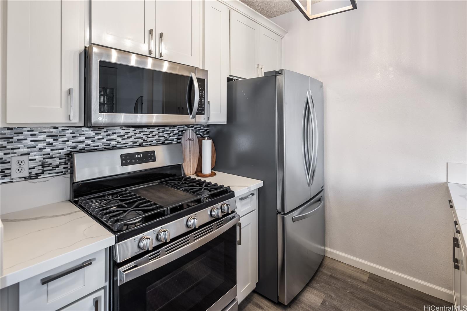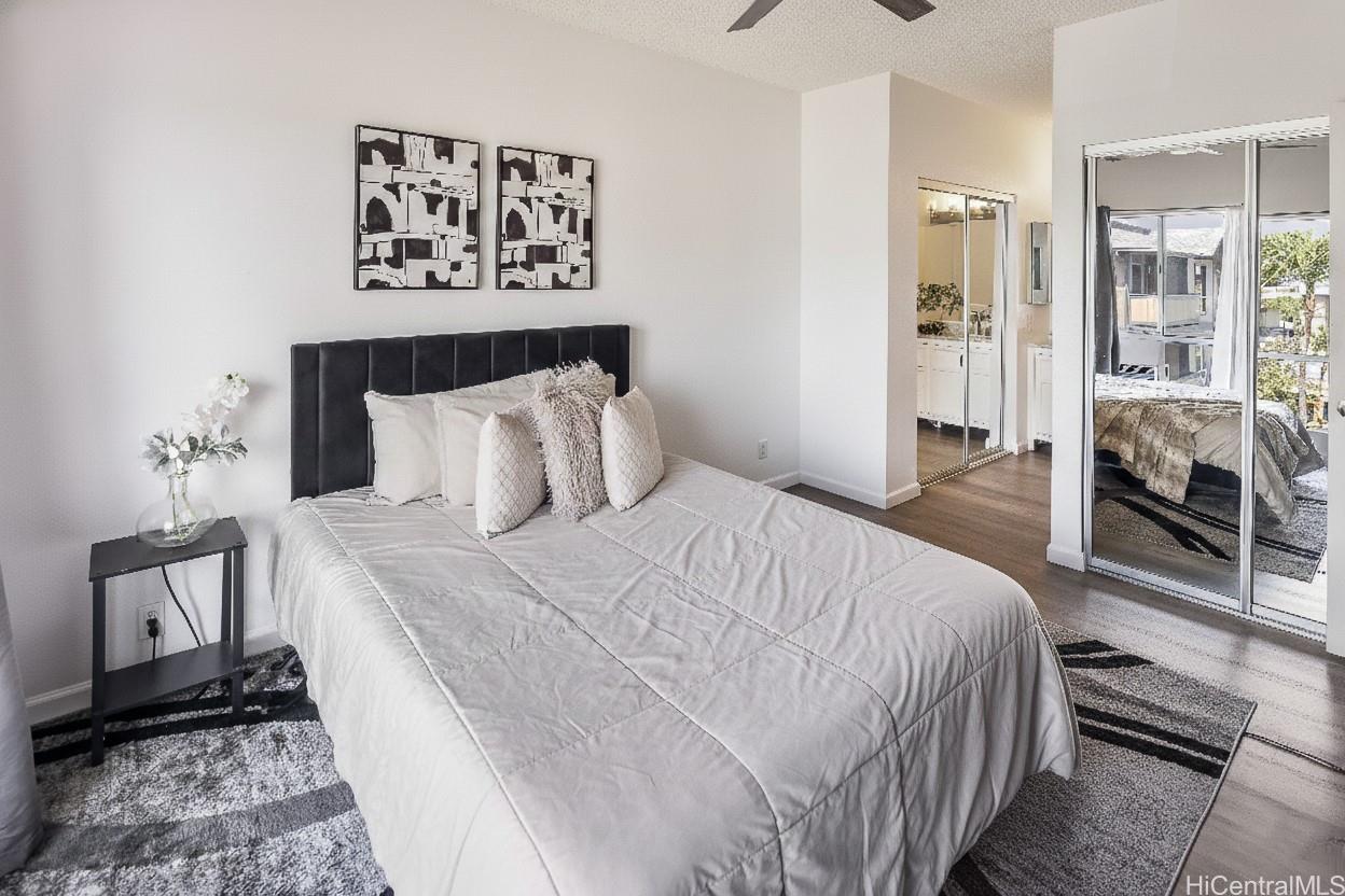 This modern, open-concept residence at Sunrise offers a sleek aesthetic and an inviting sense of space throughout. Designed for both comfort and style, the home features a generous living area that flows seamlessly to a spacious lanai—ideal for unwinding at the end of the day. Both bedrooms are well-proportioned, providing a calm and relaxing retreat.The unit includes two bedrooms, two full bathrooms, and two parking stalls. Vinyl plank flooring complements the home’s clean, modern design, while the updated kitchen and bathrooms showcase tasteful finishes that enhance the overall sophistication.Conveniently located near Foodland, Longs Drugs, banks, gas stations, Ka Makana Ali?i, Laulani Village, golf courses, public parks, and a variety of dining and shopping options, this home offers contemporary living with everyday convenience. Assumable VA Loan at 2.75% interest rate with an approximate loan balance of $298,335.