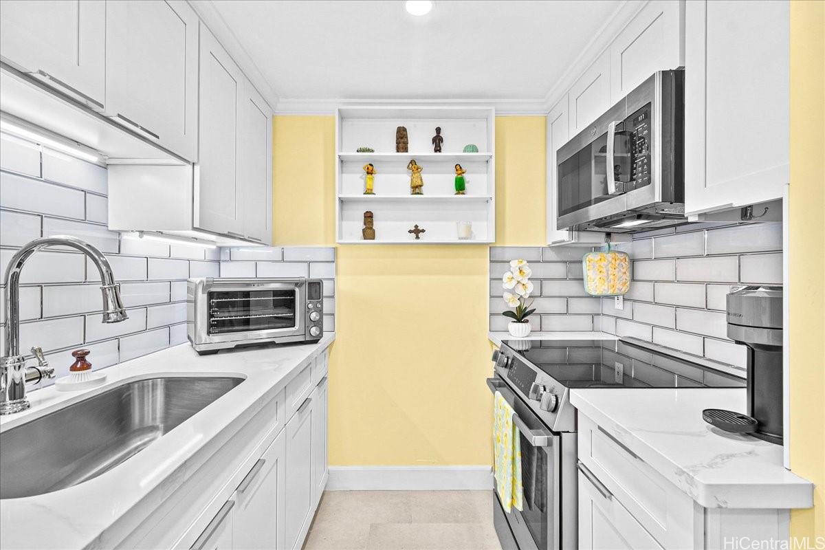 Must-see, a truly unique, luxurious, and beautiful home! 3 bd, 2 ba, 2 pkg (tandem) apartment at Sunset Lakeview! Custom, professional, and full rebuild of $290,000 completed February 2024 – January 2026. Brand new windows, doors, walls, ceilings, floors, appliances, etc. Featured highlights: recessed lighting, new front security door, split A/C system, TOTO toilet, custom safety window screens, new plumbing pipes and water heater, and much more. Breezy and bright, this unit at Sunset Lakeview is a luxuriously appointed condo with mountain, rainbows, sunset views. Building amenities include swimming pool and sauna, playground area, fitness centers, dog park, BBQ grilling area. Guest parking and 24-hour security. Building is fire rated with a new fire alarm system. Minutes from Salt Lake Shopping Center with Safeway and Longs. Daniel K. Inouye International Airport close by. Two bus routes outside the building offer easy transportation. Convenient access to freeway, military bases, downtown Honolulu. Come home, leave your cares at the door. This fully furnished, move-in-ready condo provides seamless indoor-outdoor living, optimum comfort, and peace-of-mind with thoughtful design.