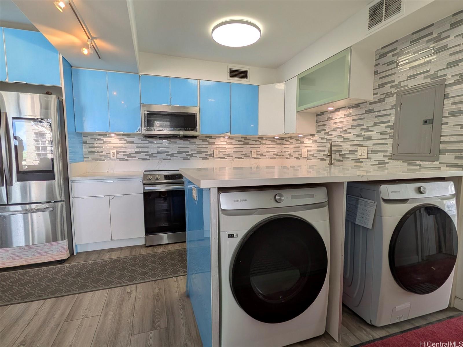 Sunset Towers corner unit with two bedrooms, two baths and a covered parking stall. The condo was remodeled in 2022. Newer appliances include a smart refrigerator and full size washer/dryer. Fantastic views and nice tradewind breezes through the condo. Spacious living area and two large lanais. Amenities include a BBQ, enclosed pet park, pool, sun deck and fully hurricane insured. Close to Ala Moana Beach and Park, Waikiki and Hawaii Convention Center. The number of full baths does not match tax office records. Great opportunity for first time homebuyers or investors! In excellent condition and “Sold As Is”.