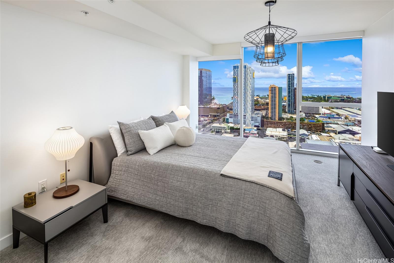 カカアコの高層階3ベッドルームコンドミニアム。海、街、山の景色を望む。 このユニットは入居可能で、日常生活に配慮したレイアウトとなっています。 玄関を入った瞬間から、ユニットはオーシャンビューを提供し、床から天井までの窓が一日中安定した自然光を取り込みます。 間取りは実用的で住みやすく、独立した洗濯室、大きなアイランドキッチンを備えたオープンキッチン、くつろぎと来客対応の両方に快適なリビングエリアが特徴です。 ラナイは2人掛けで、ここから眺める夕日は息をのむほど美しい。 キッチンにはスタジオ・ベッカーのキャビネット、ソフトクローズ式引き出し、ボッシュ製ステンレス鋼製家電、そしてアイランドにはクォーツカウンタートップが採用されています。 この家における素晴らしい集いの場は、まさにキッチンである。 メインリビングエリア全体にエンジニアードハードウッドフローリングが敷かれており、手入れが行き届いています。 各部屋には、温度と光を調節するための電動ブラインドが備わっています。 主寝室は広々としており、素晴らしいオーシャンビュー、ウォークインクローゼット、ダブルシンクの洗面台を備えています。 ユニットには2つの並列駐車スペースが付属しています。 ペットの同伴は可能です。 この建物はホノルルのような近代都市のあらゆる利便性に中心的に位置しています。 今日、ぜひ見に来てください!