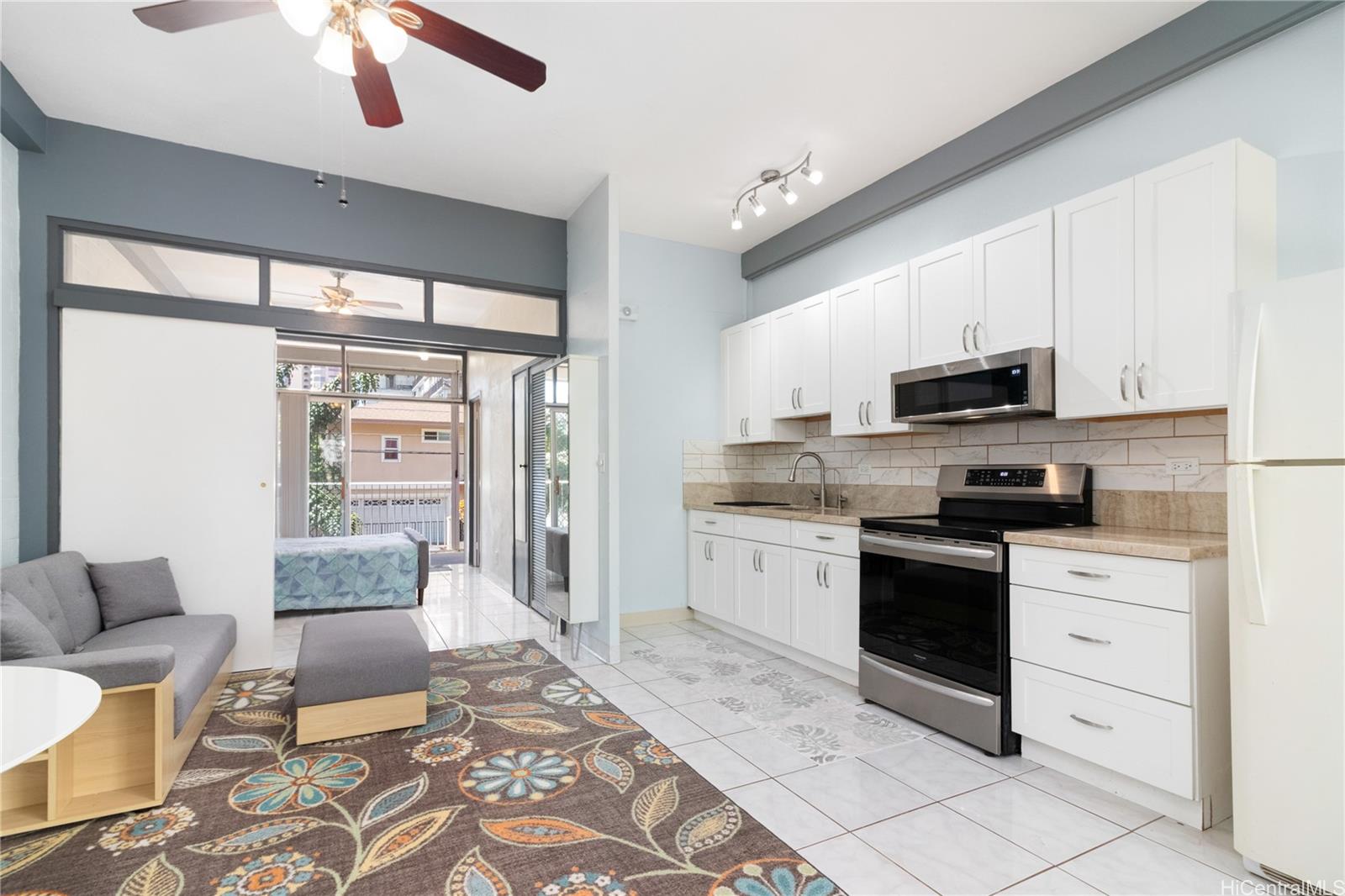 Turn key and ready to move in! Welcome to Terrazza in Makiki. Totally renovated in 2022. New electric panel, all copperinterior plumbing (building plumbing upgraded to copper in 2023), new water heater, new shower tile & fixtures, sinkcabinet in the bath, new kitchen includes new cabinets & natural stone countertop, induction range, microwave,refrigerator, and under sink water filter. New AC, paint, and ceramic tile also included in those renovations. Convenientlylocated close to bus lines, freeway, shopping, dining and entertainment, hiking trails, beaches, university of Hawaii anddowntown Honolulu. Imagine enjoying a relaxing beverage of your choice on your covered lanai or lounging by the poolonly steps from your front door. Lots of street parking in the neighborhood!