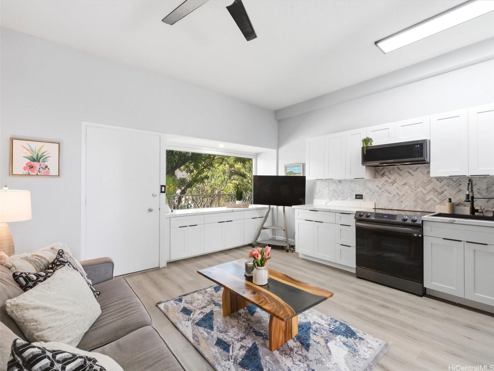 全面改装済み、好立地、そして屋根付き駐車場が完備――この物件はあらゆる条件を満たしています。 街の中心部に位置する、美しく改装されたこの1ベッドルームの逸品物件の、見事な改装をぜひご体感ください。 キッチンには、クォーツ製のカウンター、大理石のバックスプラッシュ、真新しいキャビネット、そして洗練されたブラックのステンレス製家電(大型シンク、冷蔵庫、コンロ・オーブン、スリムでモダンな電子レンジなど)が配され、輝きを放っています。 オープンコンセプトのレイアウトで、全室に高級ビニールプランクフローリングが敷かれています。 バスルームは、新しい設備、トイレ、改装されたウォークインシャワー、そしてスタイリッシュな洗面台と蛇口を取り入れ、全面的にリニューアルされました。 新調されたビニール床材、巾木、照明、シーリングファンがモダンな雰囲気を引き立て、塗り直された内装が明るく居心地の良い空間を演出しています。 安心してお使いいただけるよう、すべてのコンセント、スイッチ、カバーを交換しました。 この地域ではなかなか見つからない、屋根付きのフルサイズ駐車スペースという、めったにない利便性をお楽しみください。 ホノルル都市圏で、すぐに住める家をお探しの方――初めて住宅を購入される方、医療従事者、学生、その他どなたにも最適です。 この絶好のロケーションにある、美しく改装された物件を手に入れる絶好のチャンスをお見逃しなく。 今すぐご予約ください!