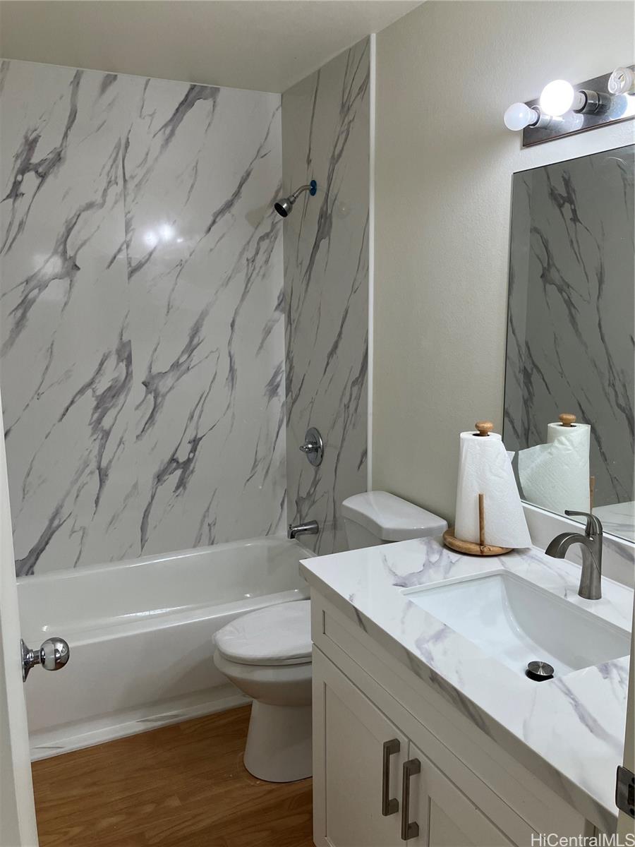 Tastefully renovated, with a new kitchen, and 2new bathrooms. 4 bedrooms with 2rooms combined into 1 large bedroom and the other 2 bedrooms remain the same. One of a kind corner home so you’ll have 2 access roads. One of very few unit that’s allowed a covered lanai, which was constructed separately. With owned solar panels and electrical storage system so electric bills is nearly nothing.