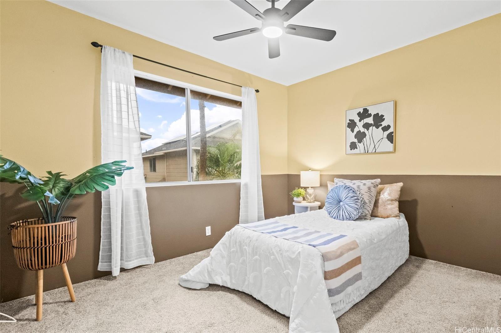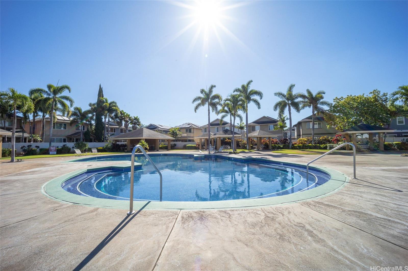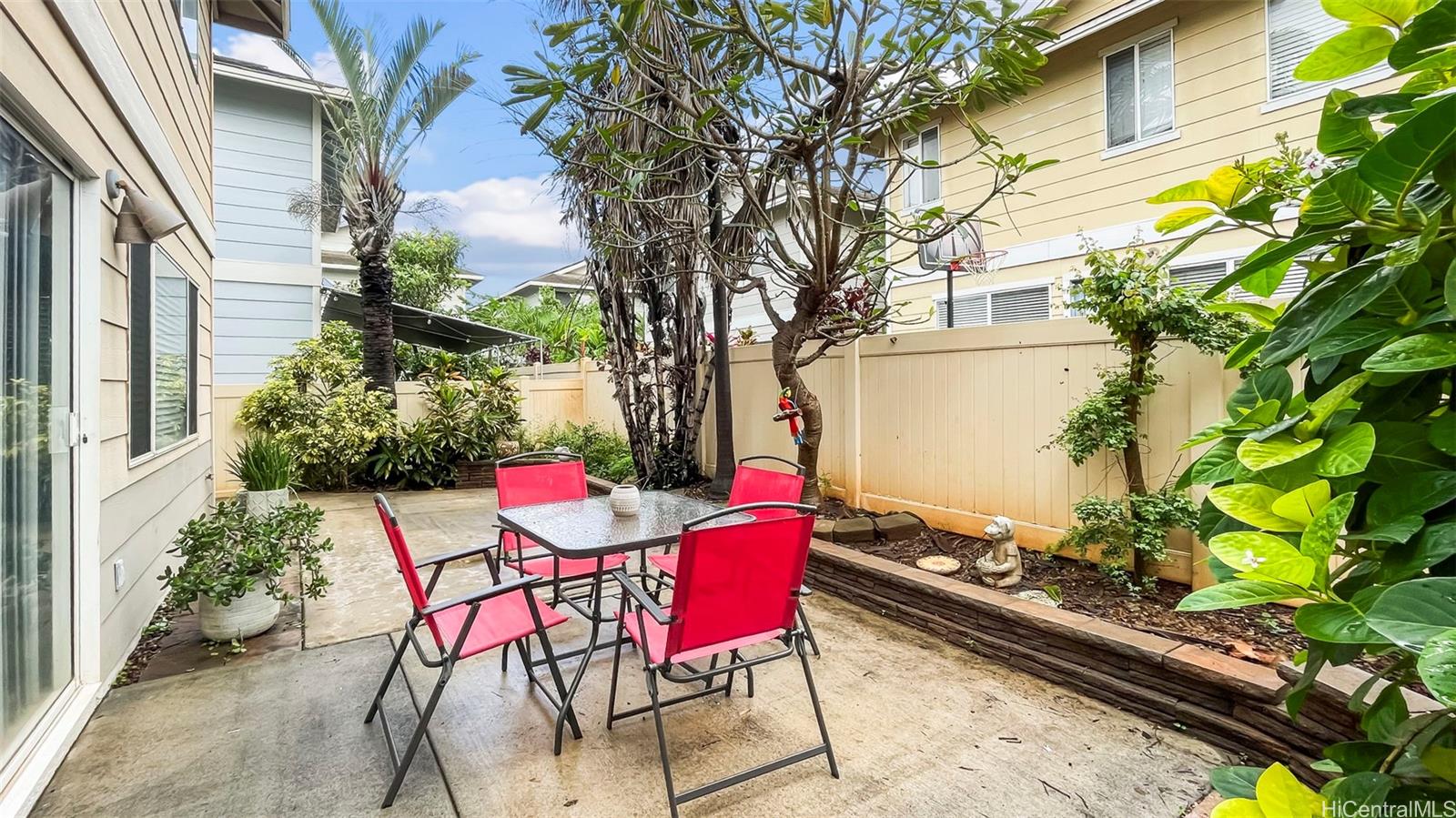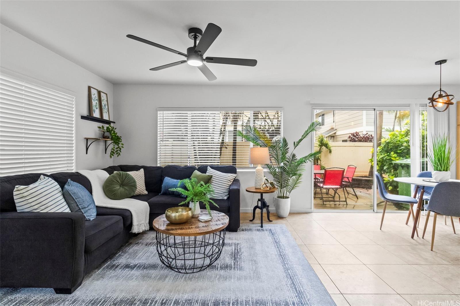 Welcome to Terrazza, a friendly, peaceful, and safe neighborhood in Ewa! You will love this beautiful three bedroom, two and a half bath move-in-ready home with a living area that flows to the dining room and kitchen, perfect for entertaining. And this opens up to the inviting and private fenced in lanai where you can barbecue, relax and enjoy the outdoors. The house is efficiently cooled with central air conditioning. Upstairs are three spacious bedrooms with ample storage, a hallway walk-in closet, and a great nook or flex space to sit, study, or use as a small office. Bonus! You have a 2 car garage, a driveway that fits 2 cars, and a parking permit for an extra overnight visitor stall. All this and conveniently close with walking distance to shopping, restaurants, public transportation, dog park, community pool and BBQ area. This is the lifestyle you’ve been dreaming of.