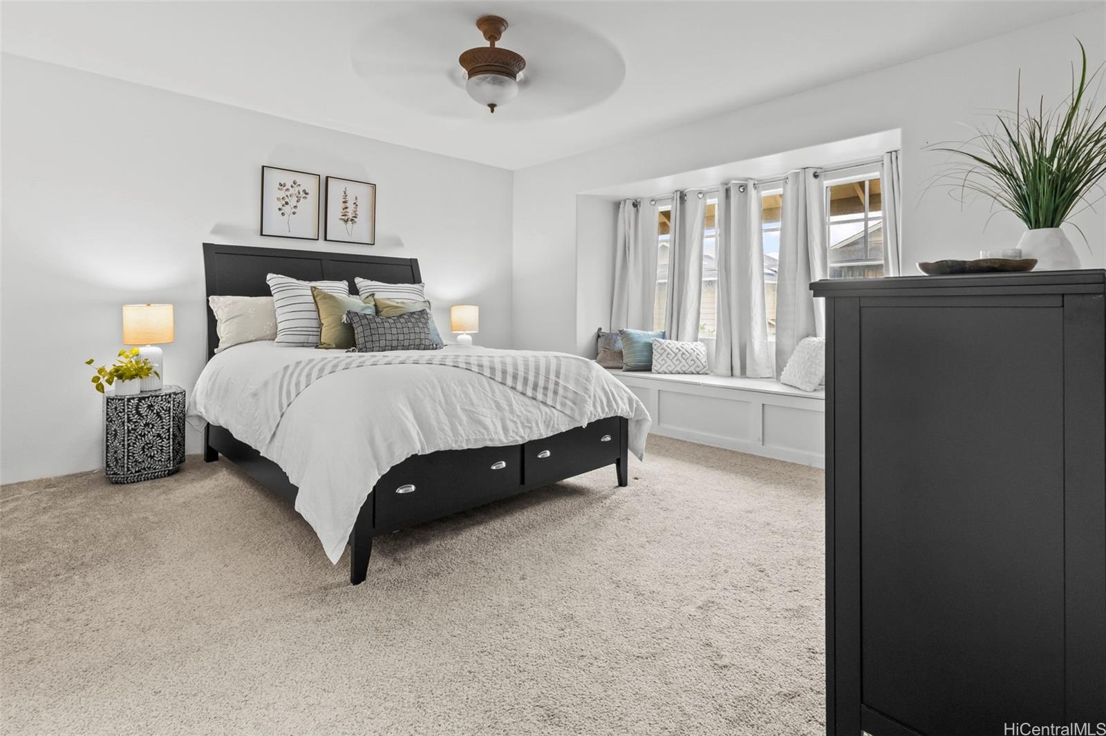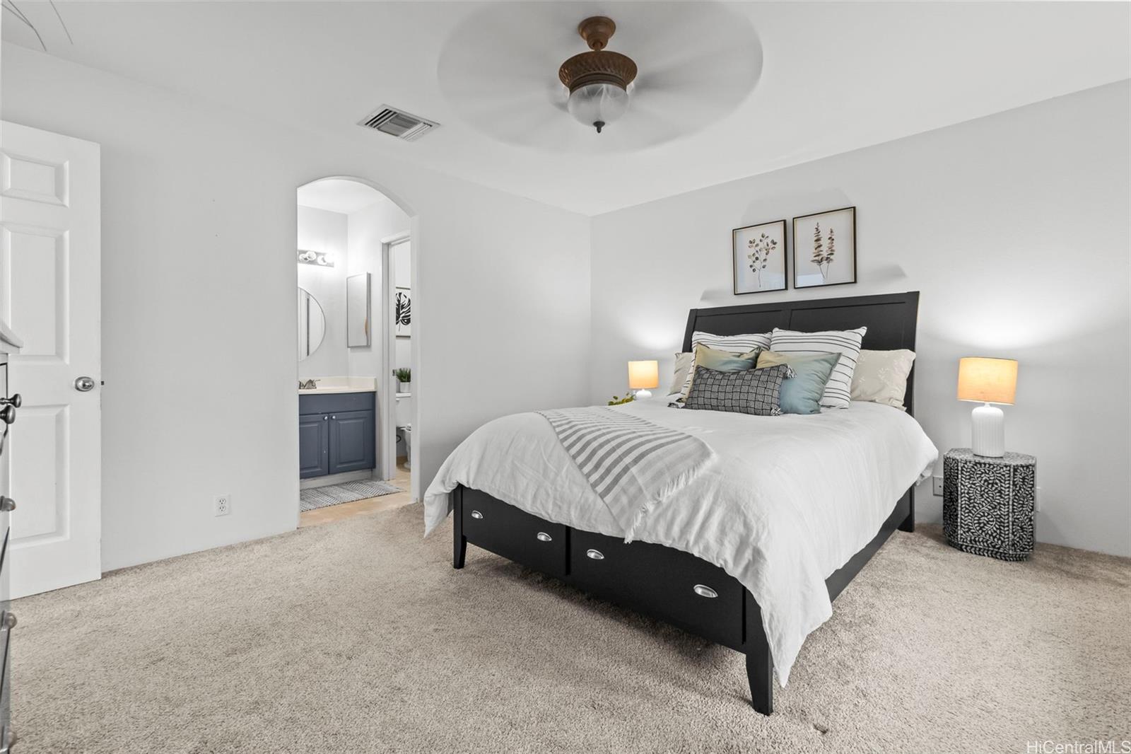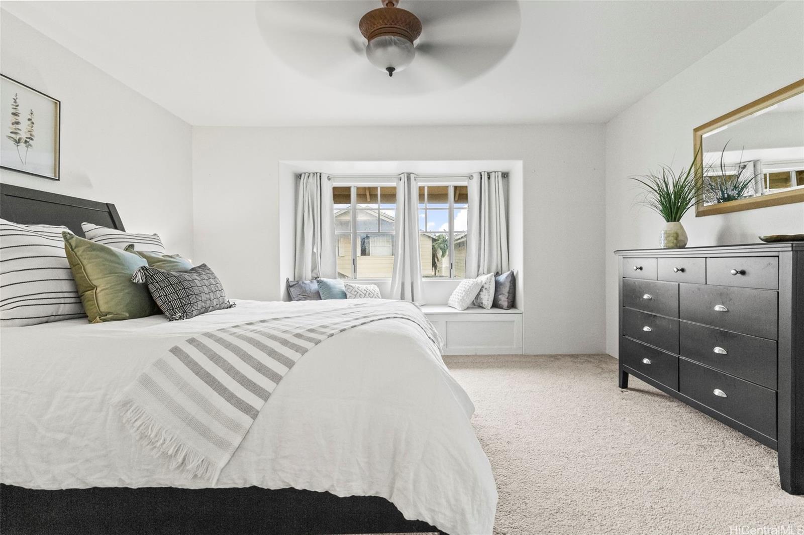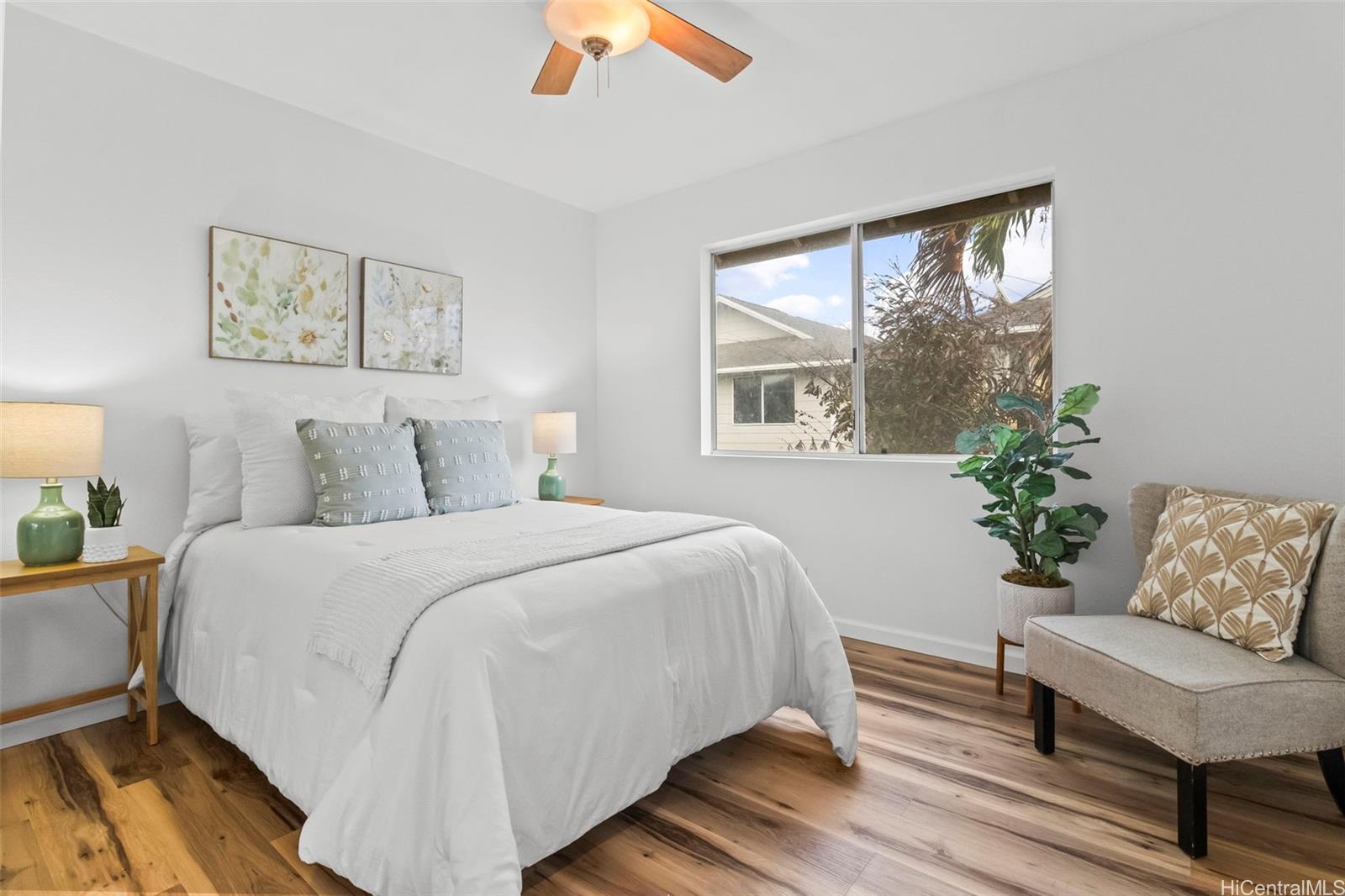 Welcome to Terrazza, a friendly, peaceful, and safe neighborhood in Ewa! You will love this beautiful three bedroom, two and a half bath move-in-ready home with a living area that flows to the dining room and kitchen, perfect for entertaining. And this opens up to the inviting and private fenced in lanai where you can barbecue, relax and enjoy the outdoors. The house is efficiently cooled with central air conditioning. Upstairs are three spacious bedrooms with ample storage, a hallway walk-in closet, and a great nook or flex space to sit, study, or use as a small office. Bonus! You have a 2 car garage, a driveway that fits 2 cars, and a parking permit for an extra overnight visitor stall. All this and conveniently close with walking distance to shopping, restaurants, public transportation, dog park, community pool and BBQ area. This is the lifestyle you’ve been dreaming of.