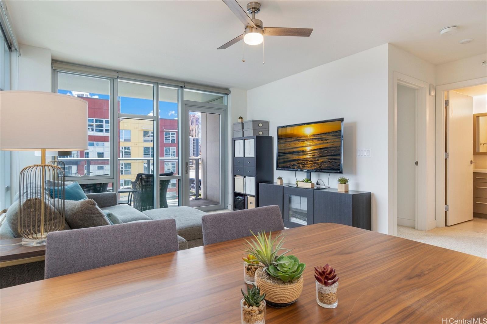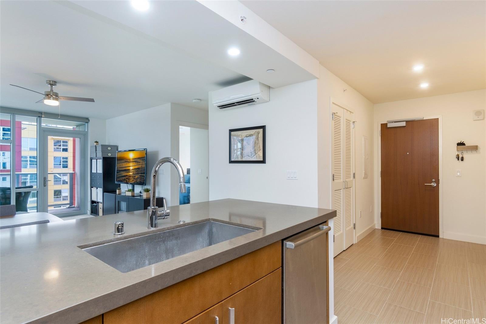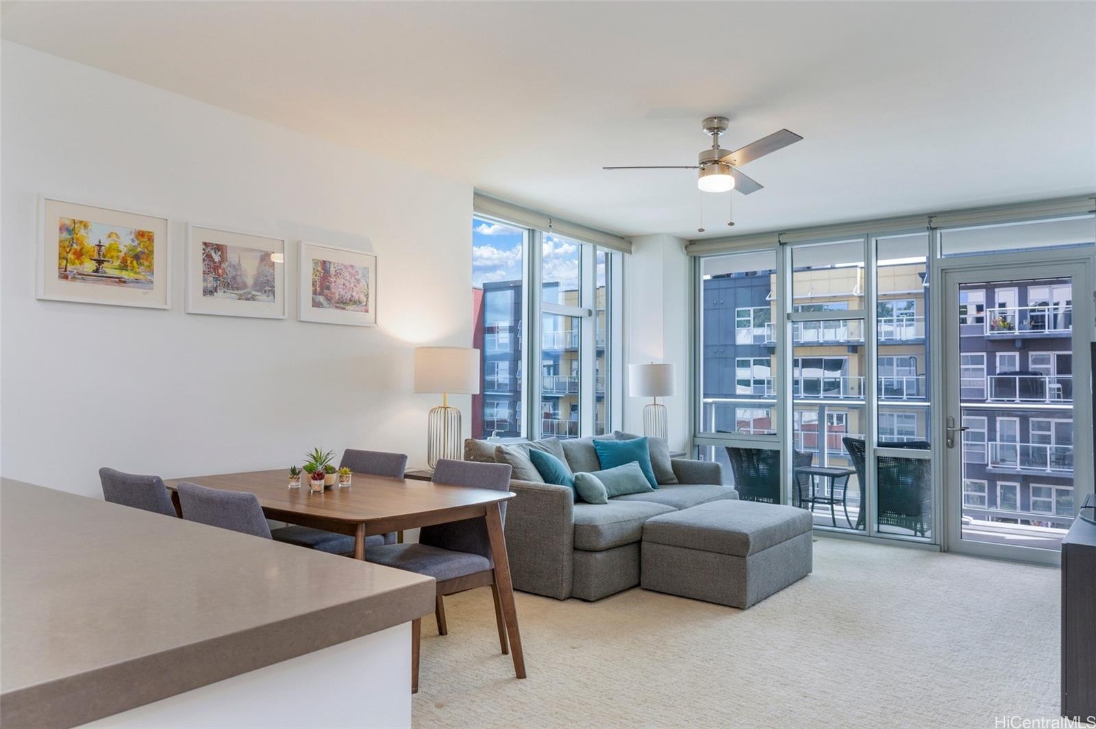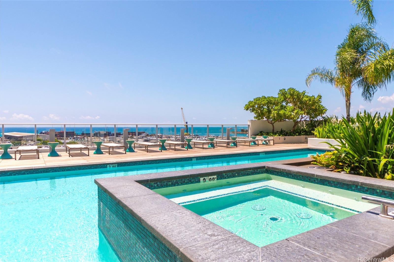 This spacious one-bedroom podium unit offers a larger layout than most tower one-bedroom residences, providing enhanced comfort and livability in an urban setting. Located in The Collection—one of Honolulu’s most sought-after condo communities—this home sits in the heart of vibrant Kakaako, a dynamic neighborhood known for its seamless blend of living, working, and recreation. Enjoy convenient access to major business districts, government offices, Ala Moana Beach Park, Queen’s Medical Center, and Waikiki, all just minutes away. Inside, the residence features approximately 700 square feet of thoughtfully designed living space, complemented by upscale finishes and high-end appliances. Added conveniences include an assigned covered parking stall and a same-floor storage locker for easy access. Residents can take full advantage of resort-style amenities, including a recreation deck with a swimming pool, jacuzzi, and barbecue areas, as well as a fully equipped fitness center and inviting club room. Monthly maintenance fees cover basic cable TV, internet, water, sewer, refuse collection, and common area expenses.