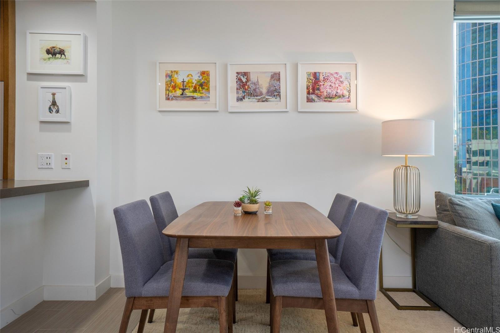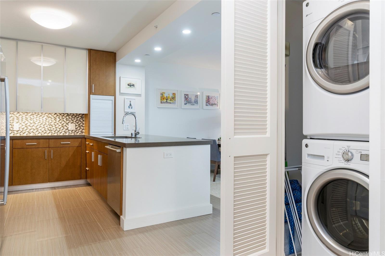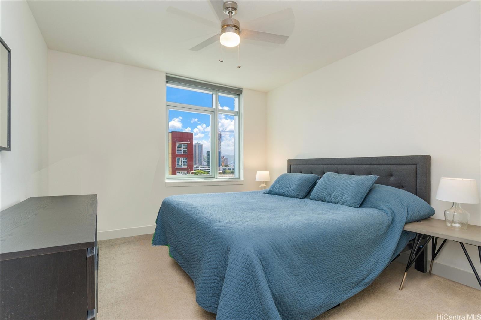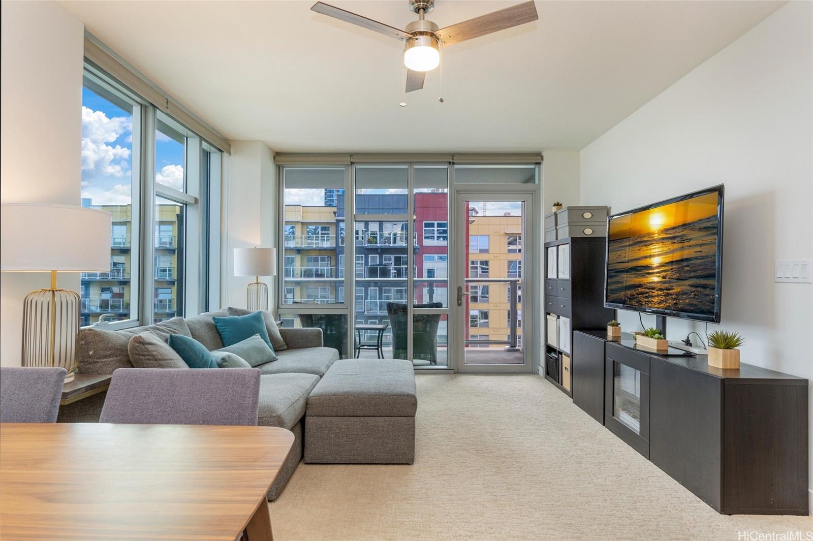 This spacious one-bedroom podium unit offers a larger layout than most tower one-bedroom residences, providing enhanced comfort and livability in an urban setting. Located in The Collection—one of Honolulu’s most sought-after condo communities—this home sits in the heart of vibrant Kakaako, a dynamic neighborhood known for its seamless blend of living, working, and recreation. Enjoy convenient access to major business districts, government offices, Ala Moana Beach Park, Queen’s Medical Center, and Waikiki, all just minutes away. Inside, the residence features approximately 700 square feet of thoughtfully designed living space, complemented by upscale finishes and high-end appliances. Added conveniences include an assigned covered parking stall and a same-floor storage locker for easy access. Residents can take full advantage of resort-style amenities, including a recreation deck with a swimming pool, jacuzzi, and barbecue areas, as well as a fully equipped fitness center and inviting club room. Monthly maintenance fees cover basic cable TV, internet, water, sewer, refuse collection, and common area expenses.