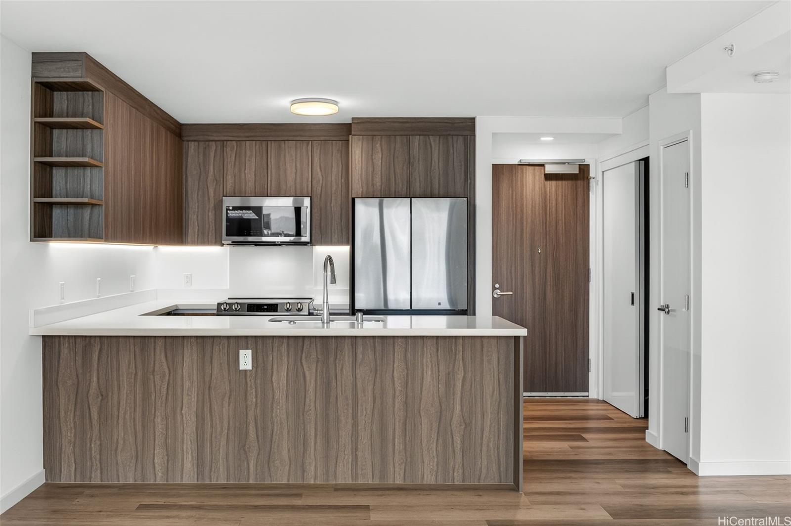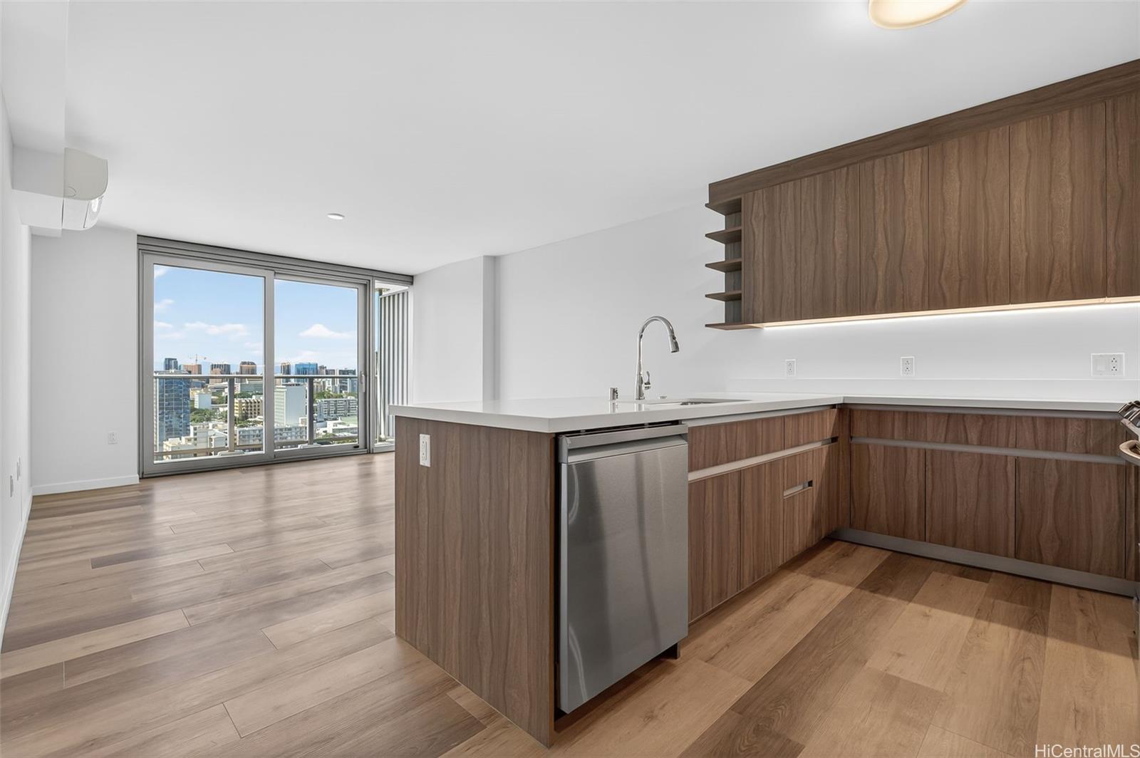 The Park on Keeaumoku is a thoughtfully designed new development that brings modern, comfortable living to the heart of a thrivingcommunity. Just minutes from Ala Moana Shopping Center, dining, and entertainment, everything you need is right outside your door.This one-bedroom residence offers the city views along with expansive floor-to-ceiling windows that fill the space with natural light. The open-concept layout features quartz countertops, luxury vinyl plank flooring in the living areas and kitchen, split AC in every room, and a private lanai to take in both city and ocean vistas.Enjoy resort-style living with exceptional amenities, including an infinity pool and spa, private BBQ pavilions, a movie theater, an indoor fitness center, yoga studio, sauna, and stylish clubrooms perfect for private gatherings