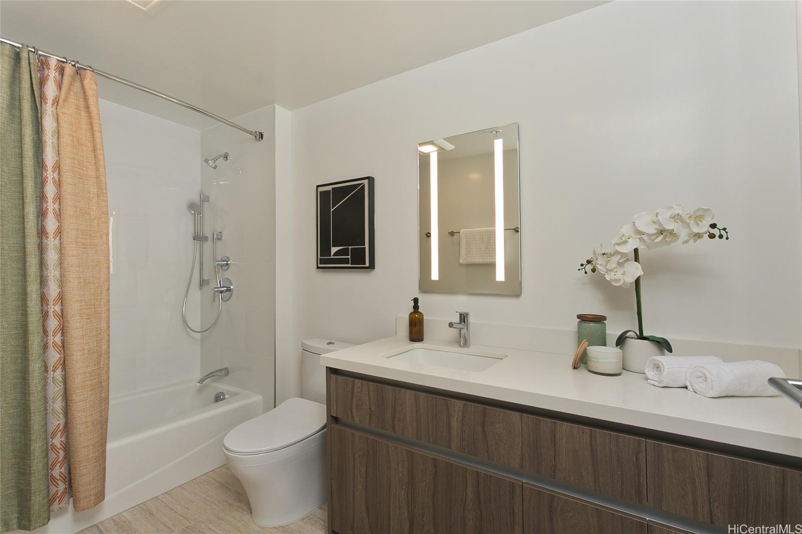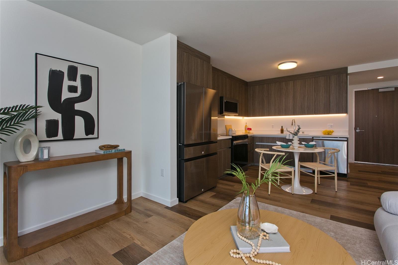 Experience modern island living in this beautifully staged 1-bedroom, 1-bath residence on a high floor at The Park on Keeaumoku. From your private lanai, enjoy breathtaking views of Diamond Head, the ocean, and Honolulu’s city lights. The open-concept layout is filled with natural light through floor-to-ceiling windows, while the sleek kitchen boasts quartz countertops, stainless steel appliances, and soft-close cabinetry. Resort-style amenities include an infinity pool and spa, fitness center with sauna and yoga studio, movie theater, BBQ cabanas, and co-working lounges. With 24-hour security, secured parking, EV charging, and a prime Midtown Ala Moana location near shopping, dining, and nightlife, this home offers the perfect blend of convenience, comfort, and lifestyle.Don’t miss the chance to see this stunning high-floor residence in person—schedule your private showing today!