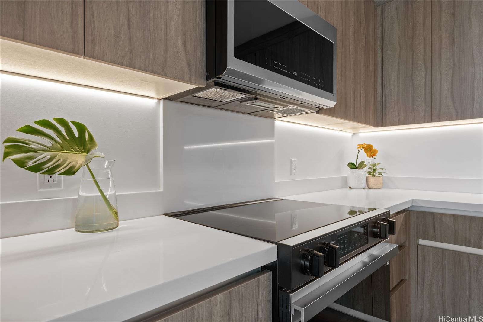 Modern High-Floor 1-Bedroom at The Park on Keeaumoku – Urban Living with Iconic Views. Discover elevated island living in this stunning 1-bedroom, 1-bath residence perched on a high floor at one of Honolulu’s most dynamic new developments. From your private lanai, take in sweeping views of the skyline, lush mountains, and the iconic silhouette of Diamond Head. Thoughtfully designed with an open-concept layout, this home is bathed in a natural light through expansive floor-to-ceiling windows. The sleek, modern kitchen features quartz countertops, soft-close cabinetry, and premium stainless steel appliances – ideal for everyday living or entertaining guests.Enjoy a wealth of resort-style amenities, including an infinity pool and spa, state-of-the-art fitness center, yoga room, BBQ cabanas, co-working lounges, dog park, and 24-hour security. Perfectly situated in the heart of Midtown Ala Moana, you’ll be just moments from world-class shopping at Ala Moana Center, eclectic dining, and vibrant nightlife. Whether you’re seeking a primary residence, vacation retreat, or investment property, this residence offers the perfect balance of convenience, luxury, and lifestyle.