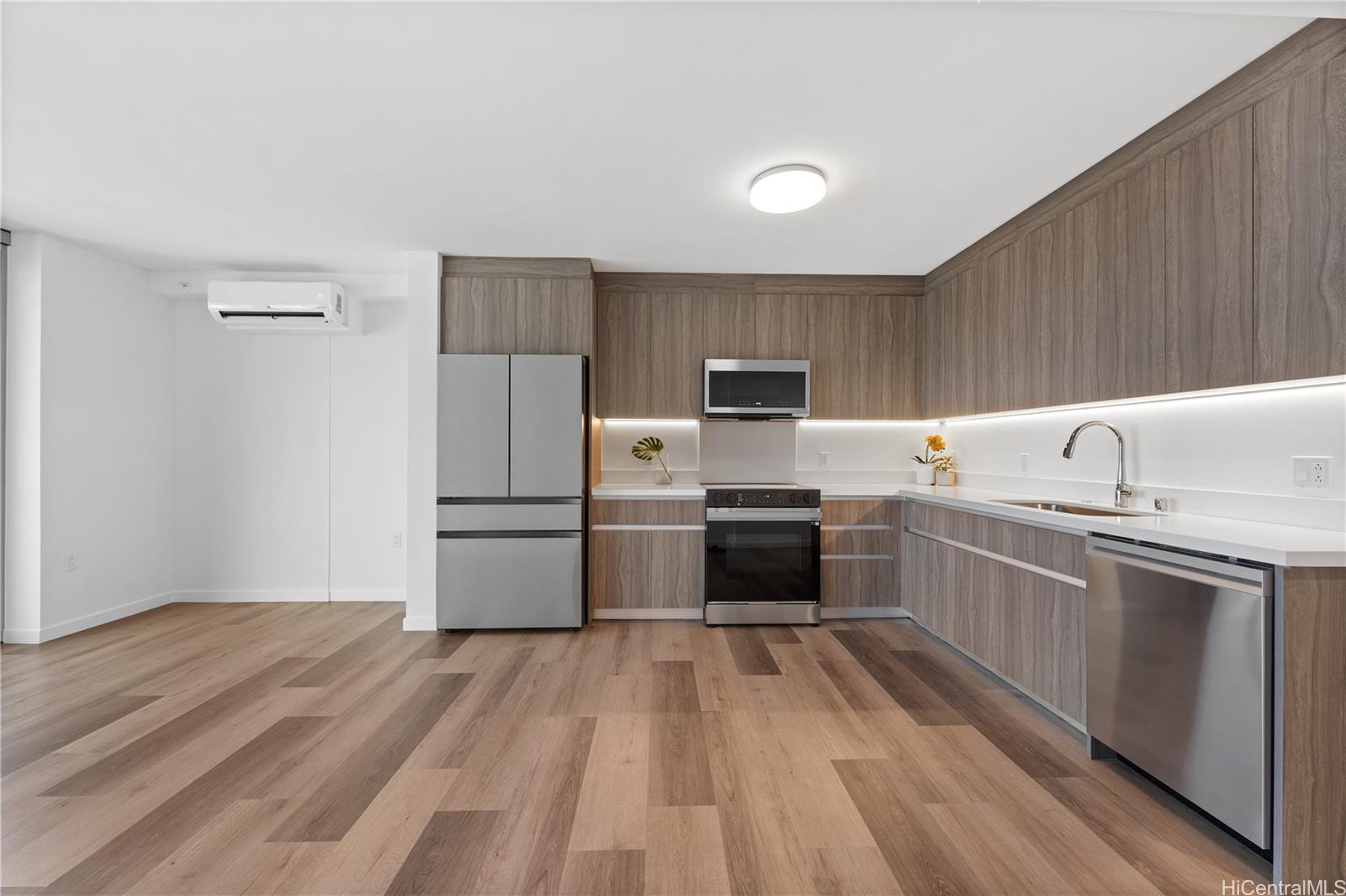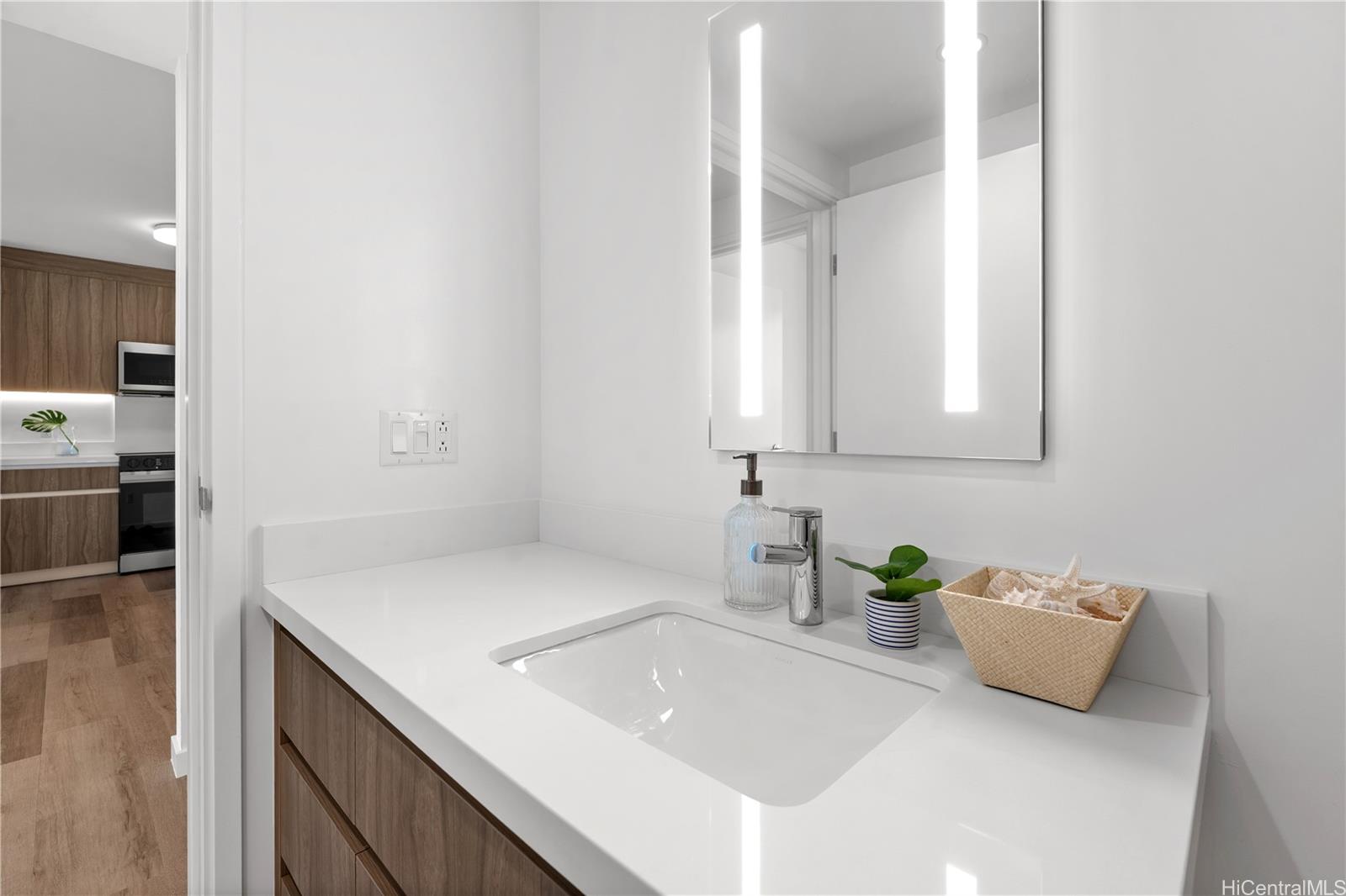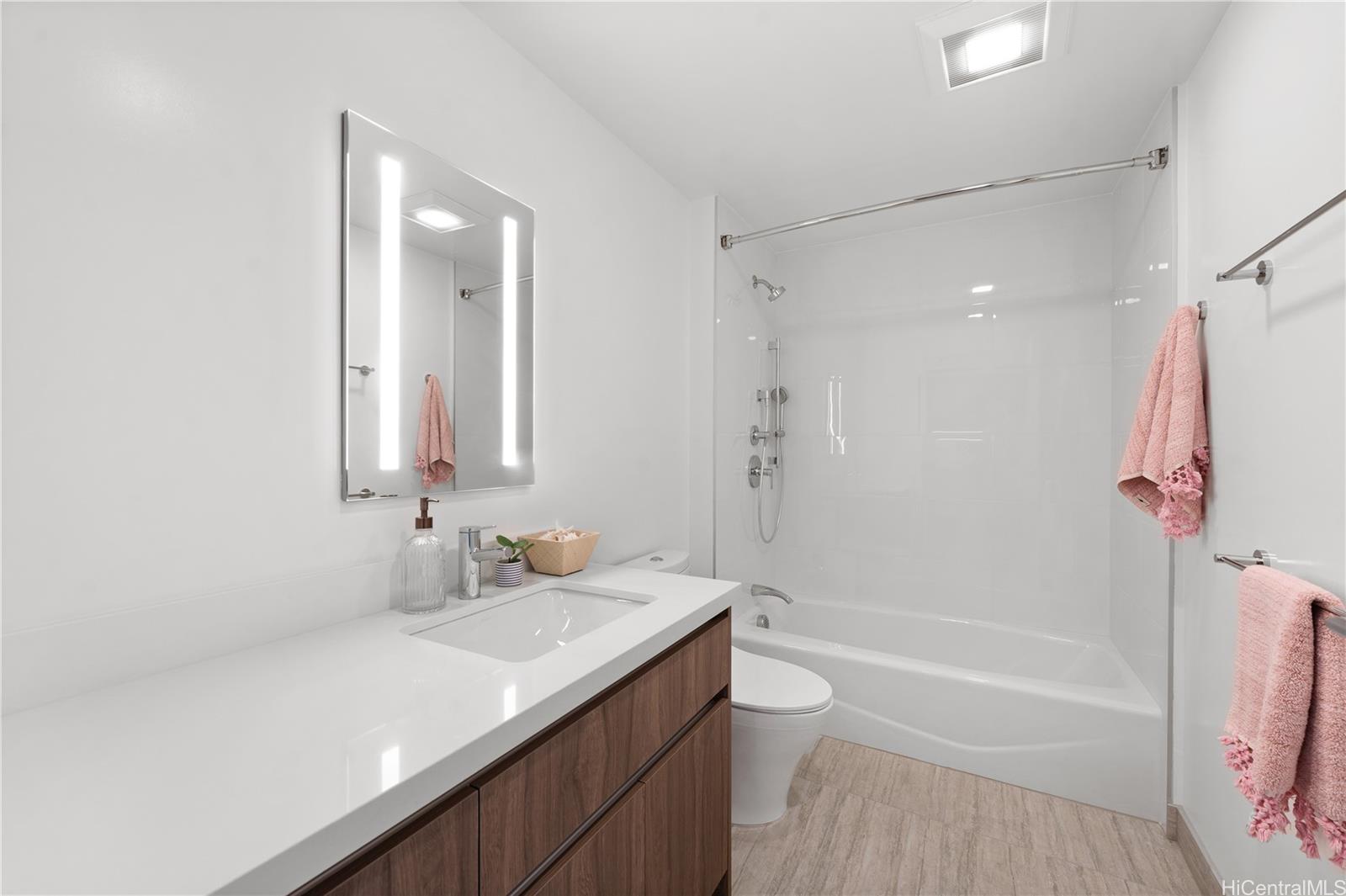 キーアモク・パークのモダンな高層1ベッドルーム – 象徴的な眺望を望む都会の暮らし。 ホノルルで最も活気ある新開発プロジェクトの高層階に位置する、この見事な1ベッドルーム・1バスルームの住居で、格調高い島暮らしを発見してください。 プライベートなラナイからは、スカイライン、緑豊かな山々、そしてダイヤモンドヘッドの象徴的なシルエットを一望できます。 オープンコンセプトのレイアウトを配慮して設計されたこの住宅は、床から天井までの大きな窓から差し込む自然光に包まれています。 洗練されたモダンなキッチンには、クォーツのカウンタートップ、ソフトクローズ機能付きキャビネット、高級ステンレス製家電が備わっており、日常の生活にも来客をもてなす際にも最適です。 リゾートスタイルのアメニティを豊富にご利用いただけます。インフィニティプールとスパ、最新鋭のフィットネスセンター、ヨガルーム、BBQキャバナ、コワーキングラウンジ、ドッグパーク、24時間セキュリティなどが揃っています。 アラモアナ・ミッドタウンの中心部に完璧な立地を誇る当ホテルは、アラモアナセンターの世界的なショッピング施設、多彩な飲食店、活気あふれるナイトライフまで、ほんの数歩の距離にあります。 ご自宅として、別荘として、あるいは投資物件としてお探しの方にも、この住居は利便性、豪華さ、そしてライフスタイルの完璧な調和を提供します。 .