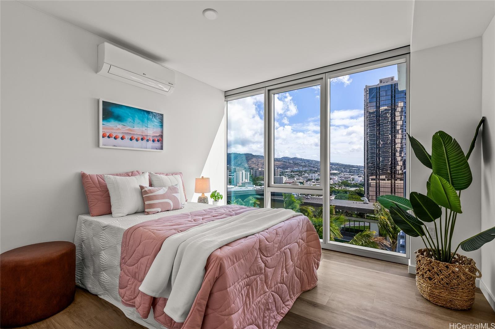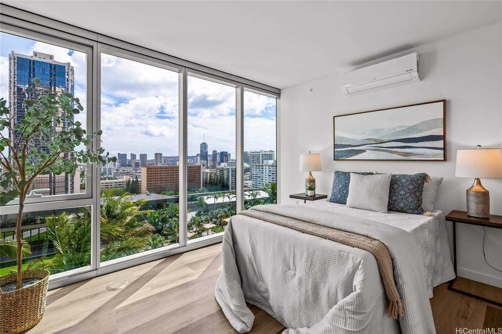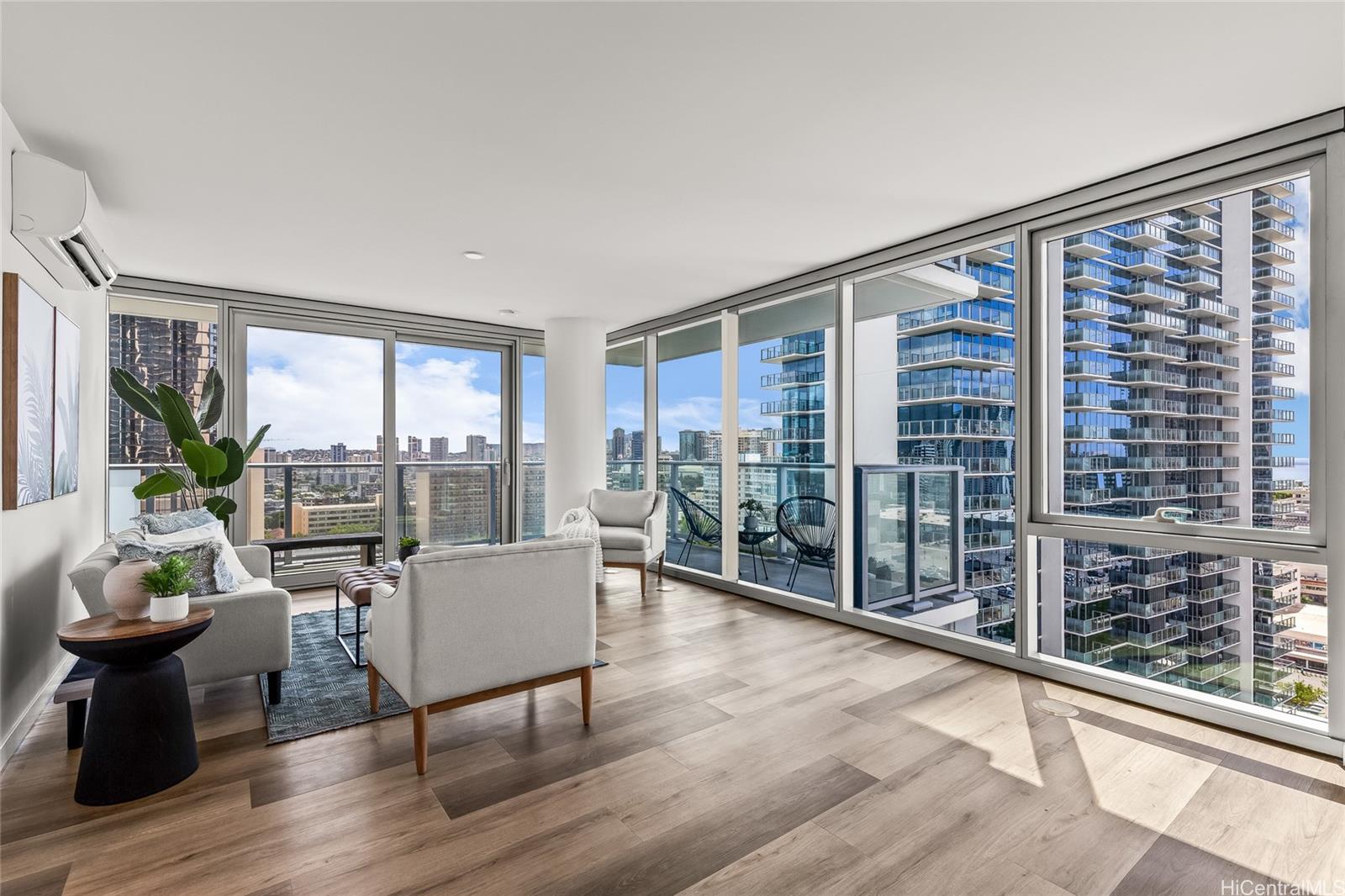 Experience modern island living at The Park on Keeaumoku #1801 in the Liona Tower, Honolulu’s newest condominium community. This highly desired corner-end “01” stack features the second largest two-bedroom floor plan with an expansive wraparound lanai showcasing panoramic views of the mountains, Diamond Head, and the ocean. Located on the preferred cooler side of the building, enjoy excellent trade winds and comfortable island breezes throughout the day. The Park on Keeaumoku offers resort-style amenities including a pool, fitness center, private cabanas, walking paths, and inviting gathering areas—all set within Honolulu’s vibrant metro hub near Ala Moana and Kapiolani. Two side-by-side parking stalls are conveniently located near the building entrance, offering comfort and accessibility in one of Honolulu’s most dynamic new communities. Whether you’re seeking a stylish new home or a smart investment, The Park on Keeaumoku allows for mid-term and long-term rentals, making it an excellent choice for both owner-occupants and investors. VA APPROVED and Pet-Friendly building.