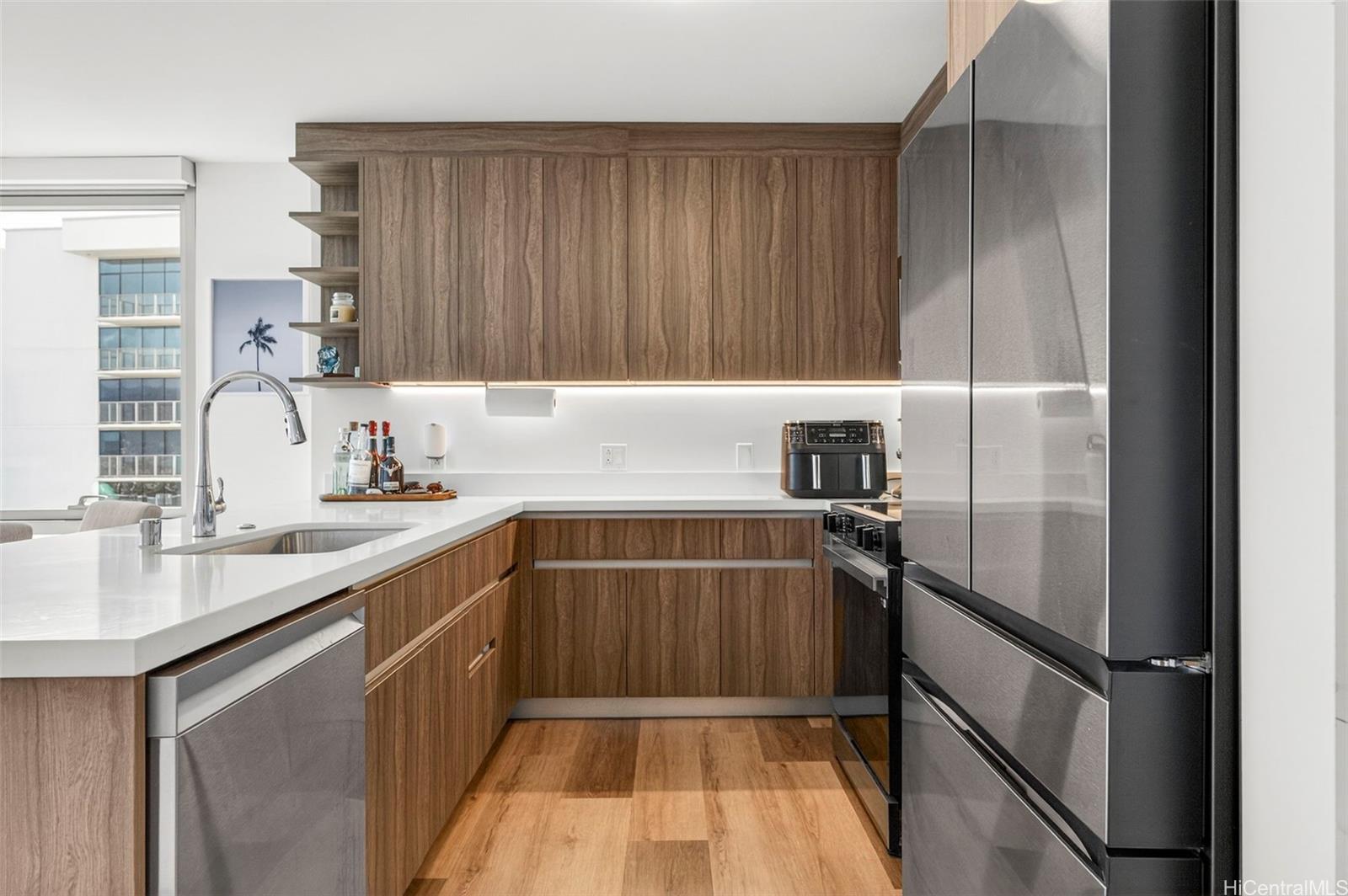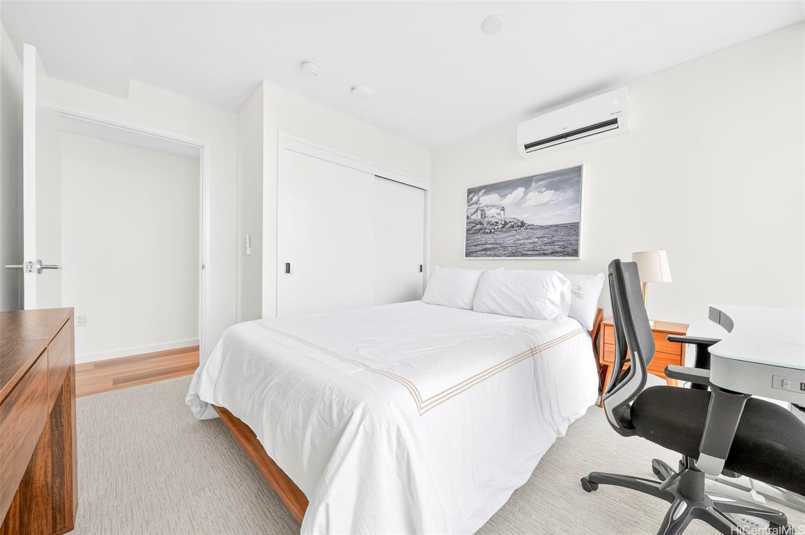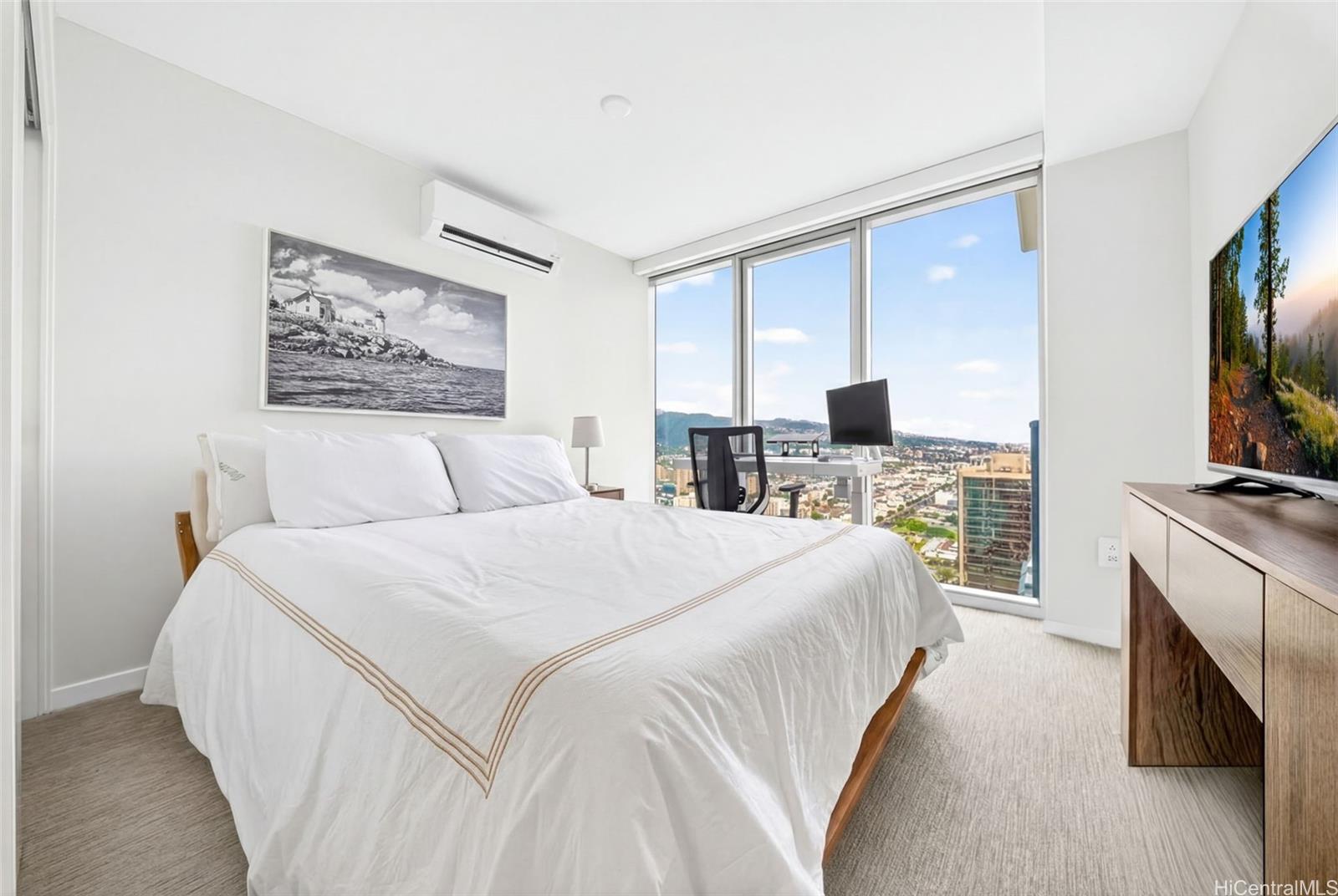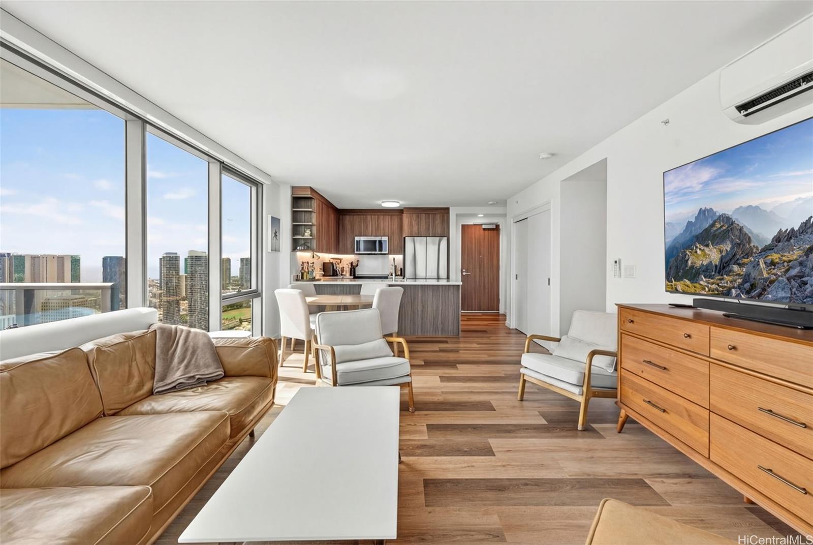 Live, work and play at The Park on Keeaumoku. New condo completed in 2025. Corner unit with wrap around lanai. Views of the ocean, Diamond Head and mountain. Centrally located. Close to Sam’s Club, Walmart, Ala Moana Mall, Don Quijote, restaurants and shops. Spacious layout with luxury vinyl flooring, floor to ceiling windows and quartz countertops. Enjoy resort amenities with infinity pool, BBQ cabanas, club rooms, movie theatre, media room, fitness gym, yoga room and co-working space. Bike storage. Pet friendly. The other fee of $55 is for Spectrum cable and Internet. Onsite food court, MidTown Eats, offers 13 food vendors and a full bar.