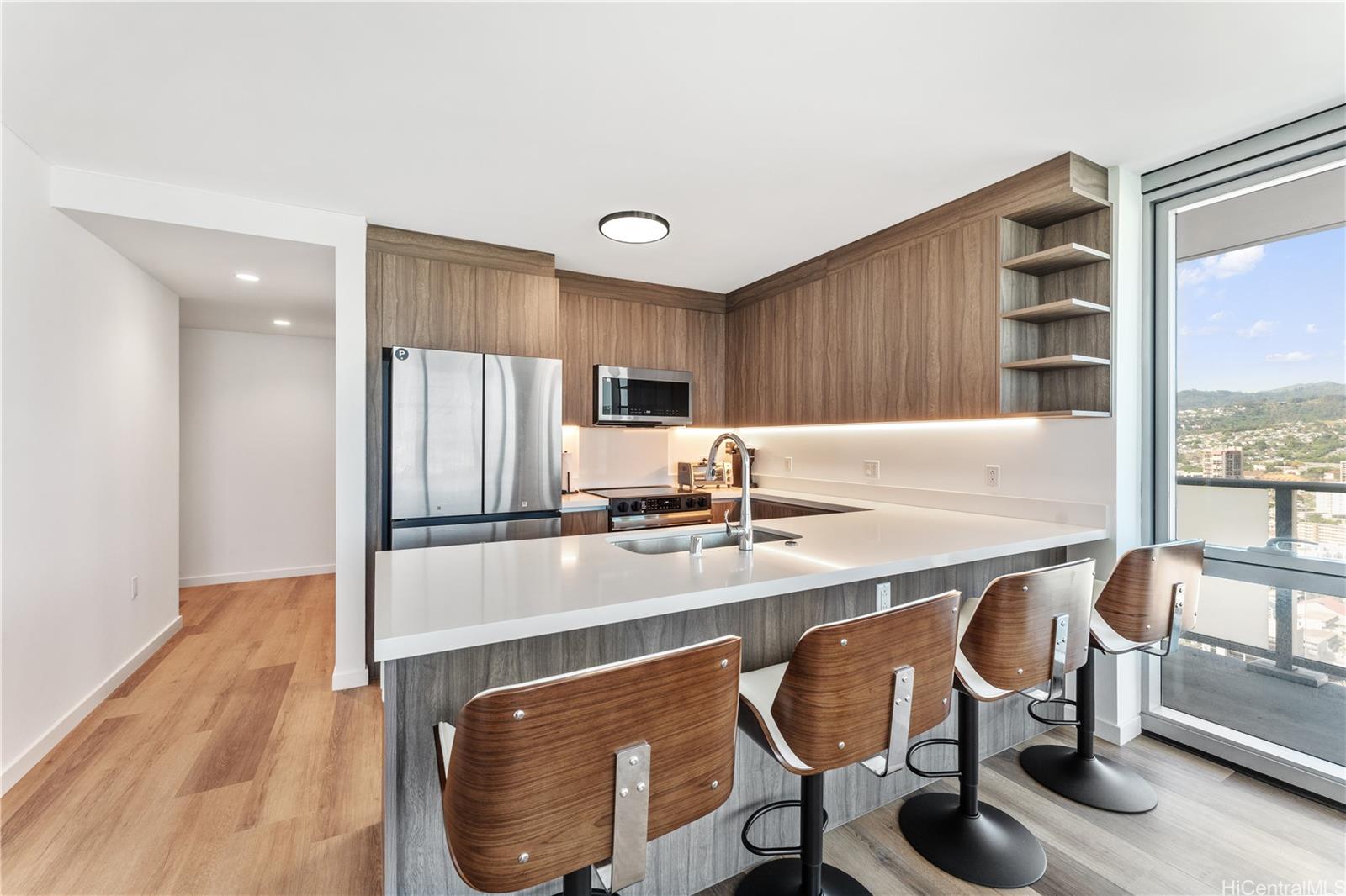 ロケーション・ロケーション・ロケーション!ホノルル最新ランドマークコミュニティ「ザ・パーク・オン・キーアモク」へようこそ。モダンなデザインと気楽なアイランドライフが融合し、あらゆるものがすぐそばにある場所です。 この真新しい、未入居の2ベッドルーム・2バスルーム・2駐車場付き住宅は、広々としたラナイから広がる海、街、ダイヤモンドヘッド、そして山々の景色を望むことができます。 天井までの窓と洗練された仕上げが調和:フレームレスキャビネット、クォーツカウンタートップ、高級ビニールプランクフローリング、全室個別エアコン、ウォークインクローゼット、独立したランドリールーム。 究極の徒歩圏内ライフスタイルを体感:アラモアナセンターまで徒歩圏内——ショッピング、ダイニング、エンターテイメント、そして間もなくオープン予定のフードコートに加え、ビーチ、公共交通機関、そしてホノルル都心部が提供するあらゆるものがすぐそばに。 現地小売店が間もなく登場します。 リゾートスタイルのアメニティが日常を格上げ:インフィニティプールで泳ぎ、スパでくつろぎ、BBQカバナでグリルを楽しみ、シアターで映画を観賞。あるいはフィットネスセンター、ヨガスタジオ、サウナ、そして約0.5エーカーの緑地が広がるザ・グローブでリセットを。 中心部に位置し利便性を追求した設計のこの邸宅は、ホノルルで最も活気ある地区の一つにおいて、豪華さ、ライフスタイル、立地条件を融合させています。 .
