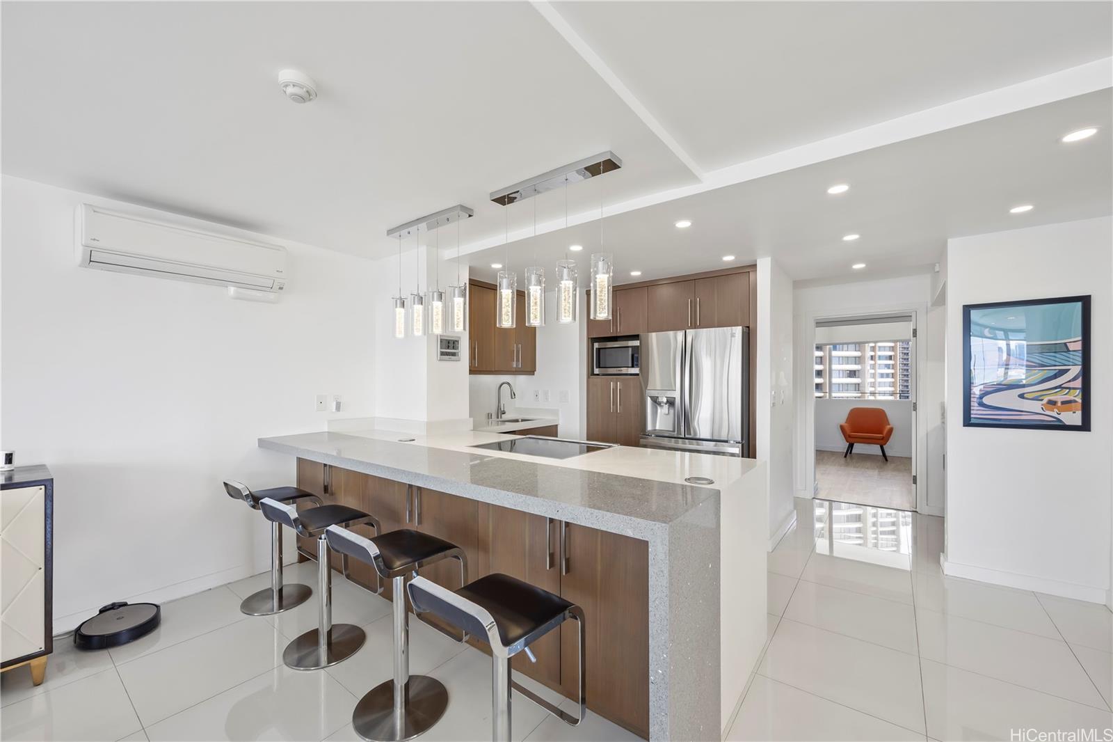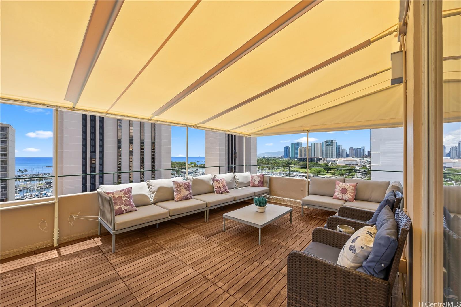 トレードウィンズ・ホテル・インクにある、希少なペントハウス・ユニット(1506A号室および1507A号室)で、島ならではの暮らしをお楽しみください。 手入れが行き届き、家具付きで、ベッドルーム3室、バスルーム2室を備えたこのリースホールド・コンドミニアムは、モダンな仕上げが施された改装済みのキッチン、ビルトインのコーヒーバー、そして快適さとスタイルを追求した改装済みのバスルームが特徴です。 明るく開放的な間取りは、自然光と貿易風を取り込み、屋内と屋外が一体となった心地よい空間を生み出しています。 外に出れば、広々とした948平方フィートのルーフトップデッキが広がり、マリーナや街の景色を楽しみながら、くつろいだりゲストをもてなしたりするのに最適です。 ワイキキの好立地に位置するこのレジデンスは、ビーチやサーフスポット、アラモアナ・センター、飲食店、ショッピング施設、生活必需品が揃うエリアに近く、快適さと利便性、そして島ならではの暮らしを兼ね備えています。 .