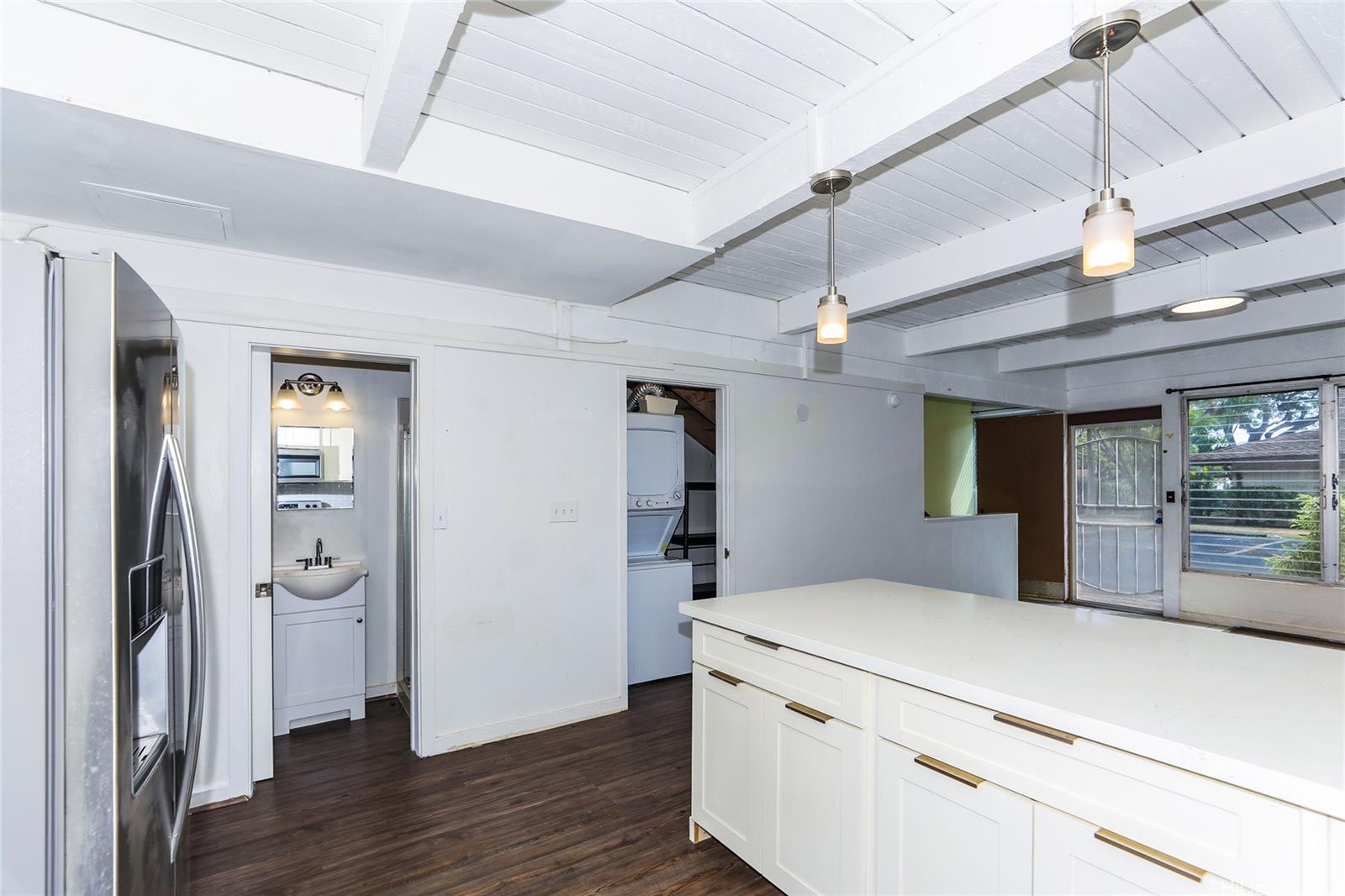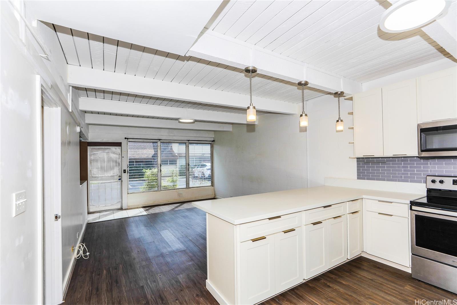 超希少物件 – 駐車場2台分付き!美しく改装された多層構造の2ベッドルーム・2バスルーム住宅。 1つの寝室には窓用エアコンが設置されており、両方の寝室には照明付き天井ファンが備わっています。 全室に新しい床材を採用し、キャビネットと固体表面カウンタートップを刷新したキッチン、そしてペンダント照明(キッチンカウンター上部に設置)を含むモダンな照明設備をお楽しみください。 上階と下階のバスルームは、どちらもスタイリッシュに改装され、新鮮な印象を与えています。 この古いタウンホームコミュニティは、カハラモール、ワイアラエビーチパーク、その他の飲食店に近接しています。 売り手はハワイ州の免許を持つ不動産エージェントです。 .