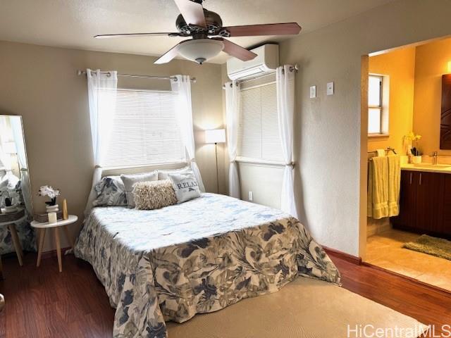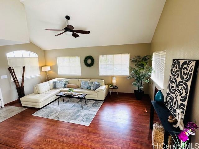 Conveniently located near the Patsy Mink Central Oahu Regional Park, Waikele Outlet and the freeway, this home is perfect for the remote professional. This home has been expertly converted into a two-bedroom home with a private office. The living space is anchored by stunning Koa laminate floors and a modern kitchen featuring sleek quartz counters and custom-built cabinets. From the designer-upgraded bathroom to the polished flagstone garage, every inch of this property has been elevated for contemporary living. Enjoy cool days with 4 split AC systems and 26 owned solar panels with EV charging outlet already installed. Gated backyard with storage shed & flagstone flooring provides convenience, security, & easy maintenance. This one won’t last long!