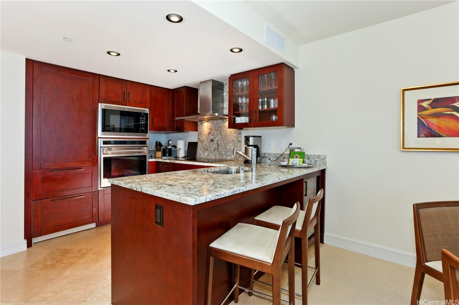 This is the finest and most prestigious Hotel Residence in Hawaii. Relax and enjoy the ultimate resort life with Hilton’s LXR Hotels & Resorts signature services. Fully furnished and includes upscale appliances and granite counter-tops, kitchenware, bath amenities, and linens. Within the hotel is a state-of-the-art fitness center and spa. A very devoted concierge service and valet parking service. Free valet parking (upon availability) for owners during their occupancy. Unit #2122 is the on the 21st floor, ocean side corner unit with expansive ocean views.