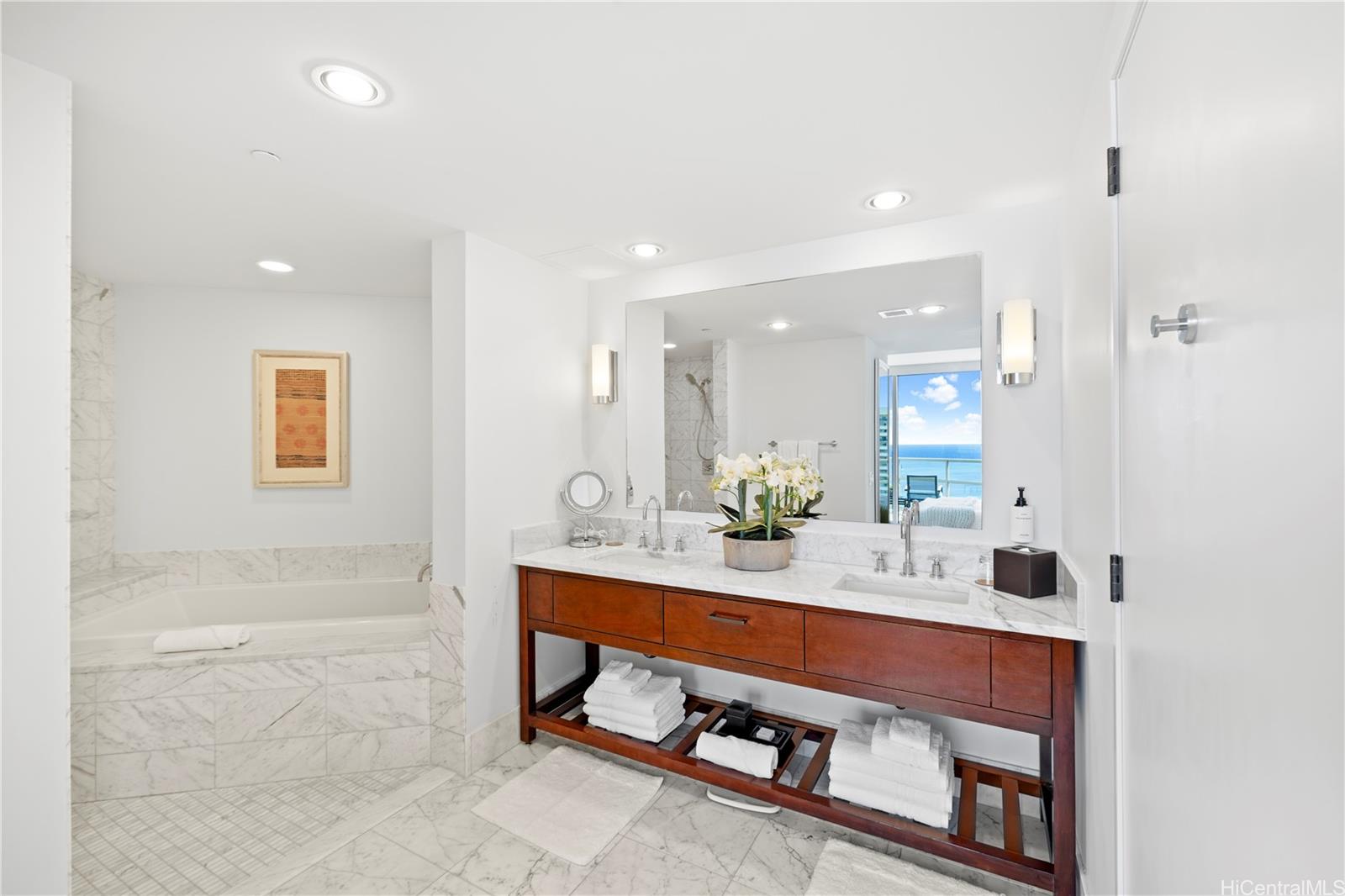 ワイキキビーチからわずか数分、エレガントにアップグレードされたこの角部屋ユニットは、真のリゾートスタイルの暮らしを提供します。 ホテル内のレストランやルームサービスだけでなく、近隣の様々なレストランへのアクセスも便利です。 山々に縁取られた街のスカイライン、ハワイカイのココクレーターとココヘッド、ダイヤモンドヘッド、そしてワイキキビーチを背景にした象徴的なピンクパレスのパノラマビューを一望できる。 1つは海に面したプライマリー・ベッドルームから、もう1つは美しい山の景色を望むリビング・ダイニング・エリアから。 設備の整ったキッチン、広々としたバスルーム、主寝室のウォークインクローゼットを含む十分な収納、随所に施された気の利いたディテールが特徴です。 最近の更新には、真新しい人工ハードウッドフロアが含まれ、家全体に穏やかな暖かさと快適さを加えている。 フロアがいかに重要であるかを思い起こさせ、心を癒してくれる場所なのだ。 新しいモダンなローラーシェードは、この角部屋ならではの180度の素晴らしい眺望を最大限に生かすようデザインされている。 ラグジュアリーなアイランドリビングの醍醐味を体験しよう。 .