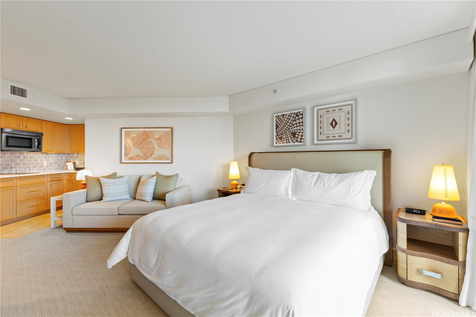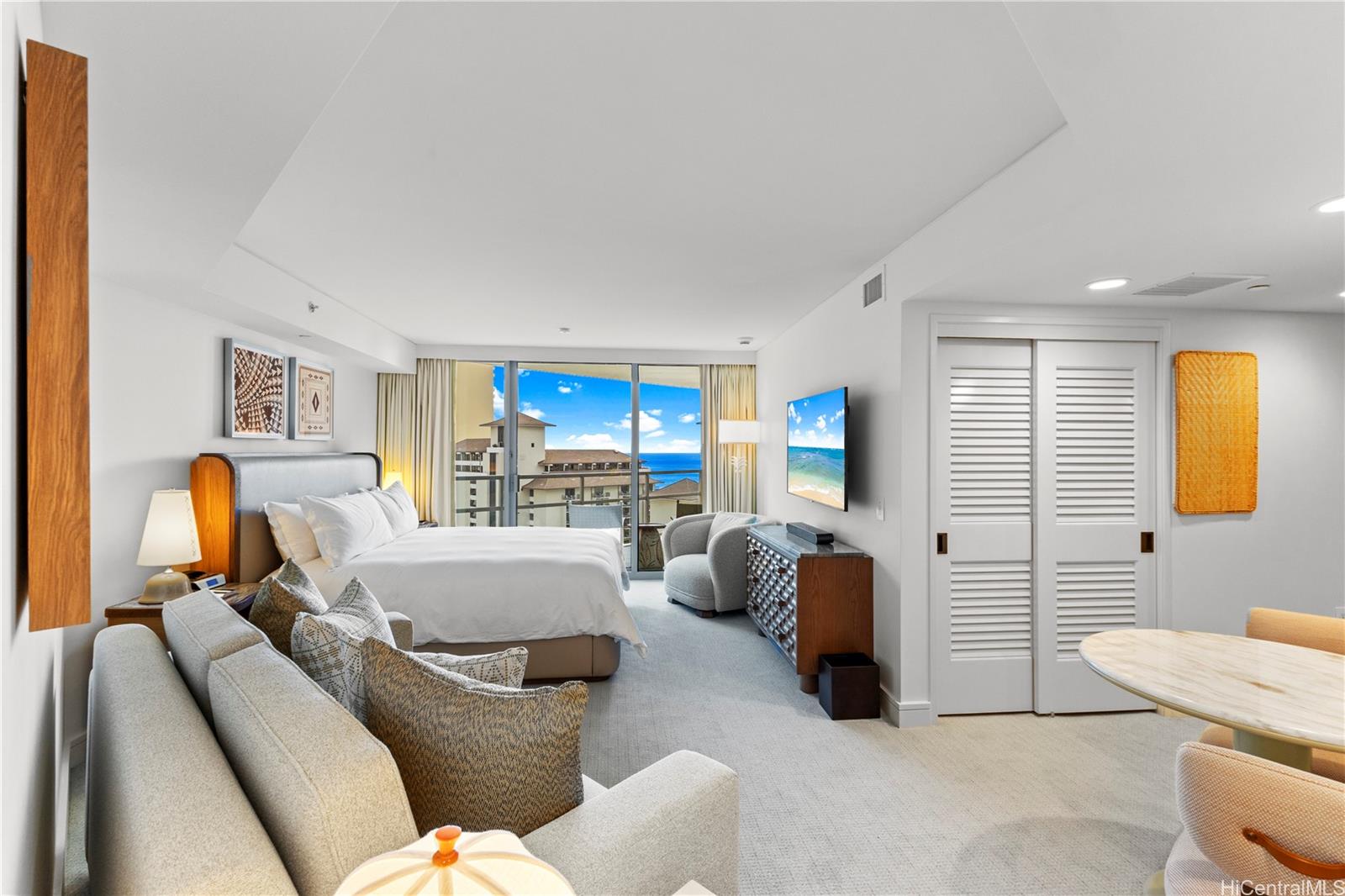 Renovation completed in Nov 2025!! Enjoy luxury living at Ka La’i Waikiki Beach, LXR Hotels & Resorts Hotel/Condo! (former Trump International Hotel Waikiki) This studio unit comes fully furnished with all linens & Kitchenware. Top notch amenities include infinity pool, concierge, valet parking and a full service spa. Including in purchase are upscale appliances, granite counter tops and travertine tile flooring.