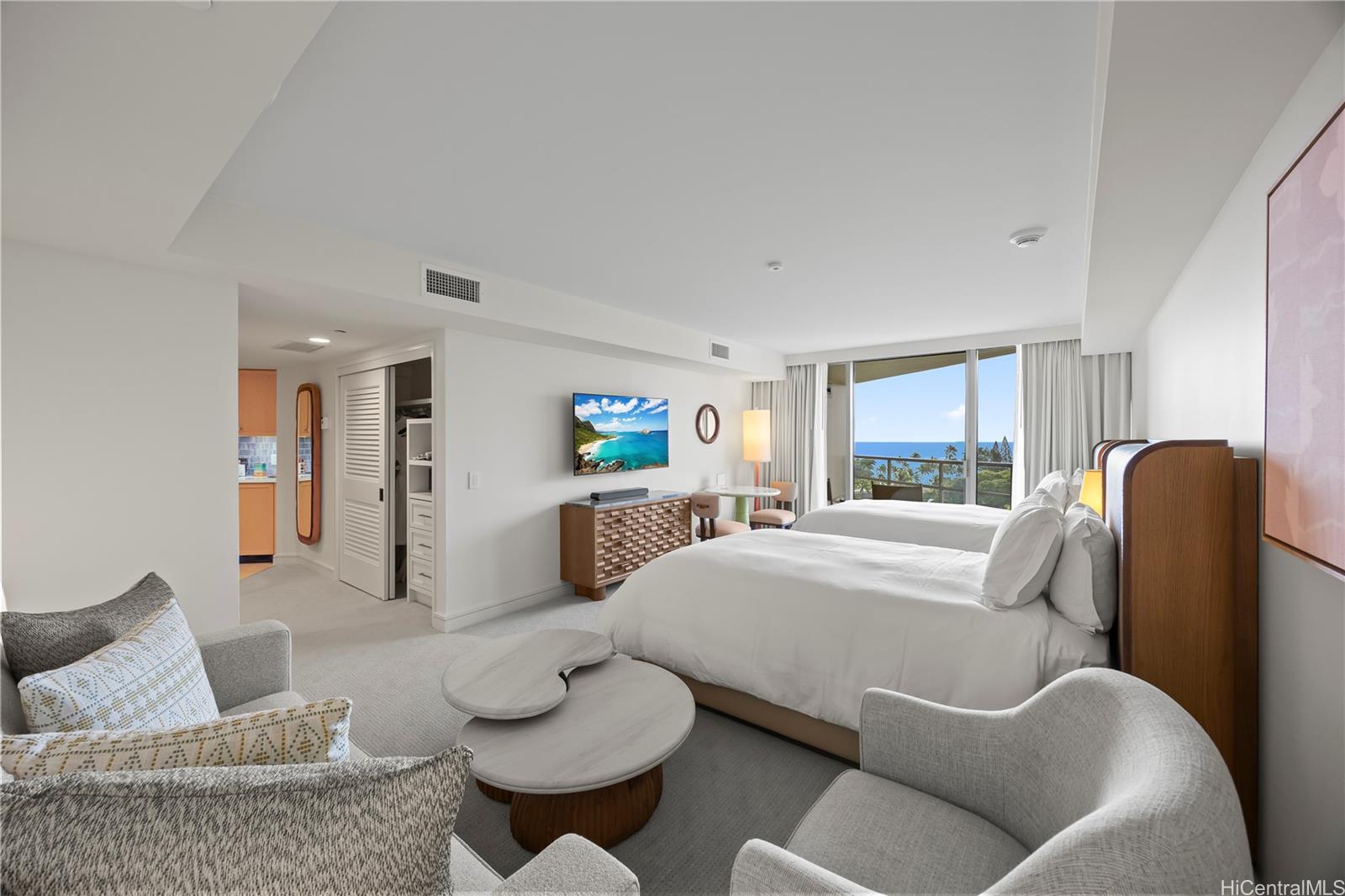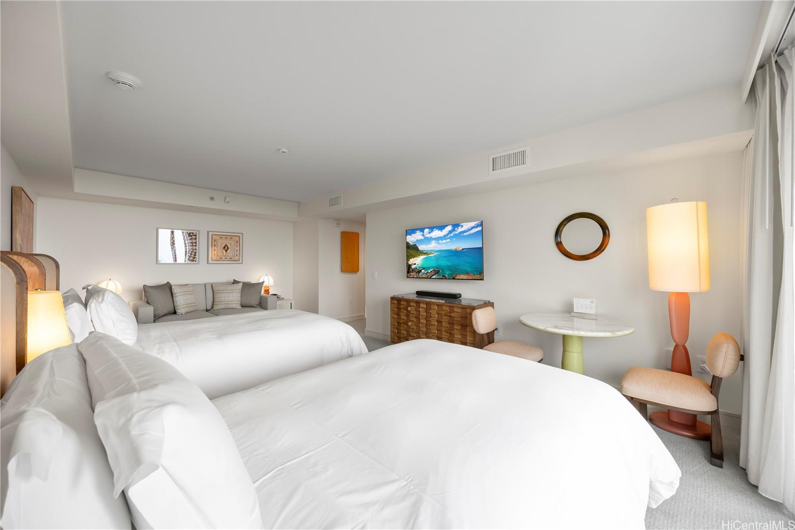 Rarely available studio with 2 beds! Enjoy luxury living at Ka La’i Waikiki Beach, LXR Hotels & Resorts Hotel/Condo! (former Trump International Hotel Waikiki) This Studio unit comes fully furnished with all linens & Kitchenware and Ocean and Mountain View! Top notch amenities include infinity pool, concierge, valet parking and a full service spa. Including in purchase are upscale appliances, granite counter tops and travertine tile flooring. Steps away from Waikiki’s famous white sand beaches.