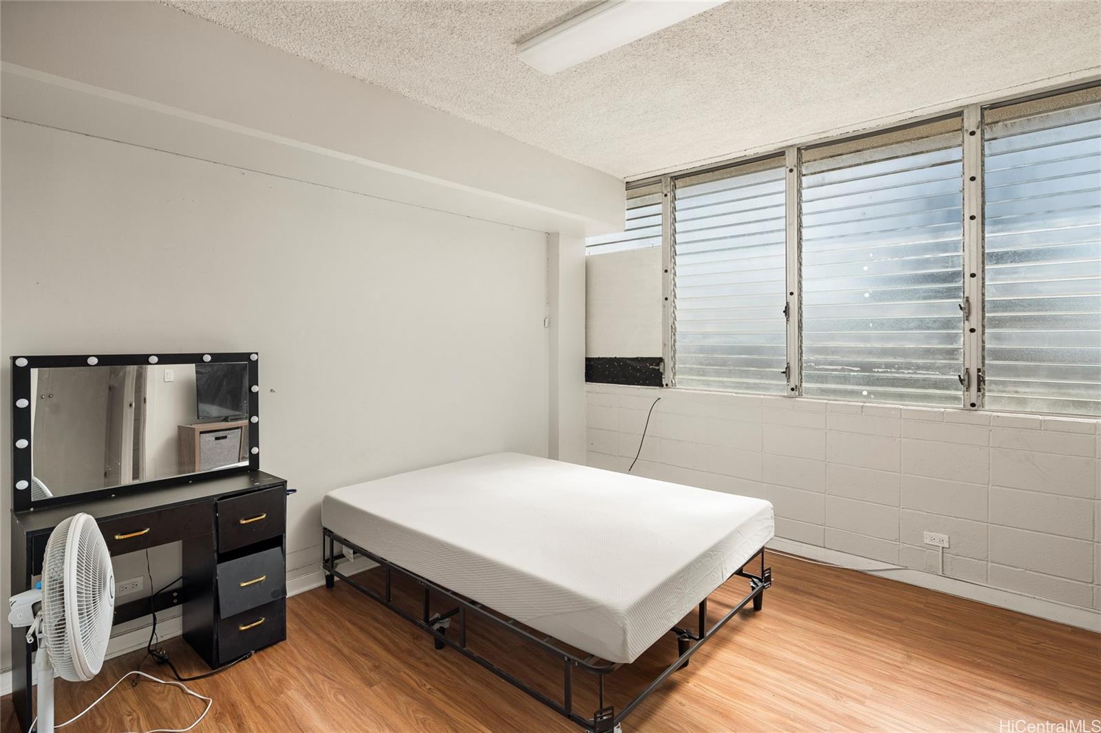 Large BMX-3 Unit with one unassigned parking stall, one full bath and Kitchen recently remodeled in a central location walk to University Hawaii, close to Bus, shopping, restaurants. Third story walk-up.