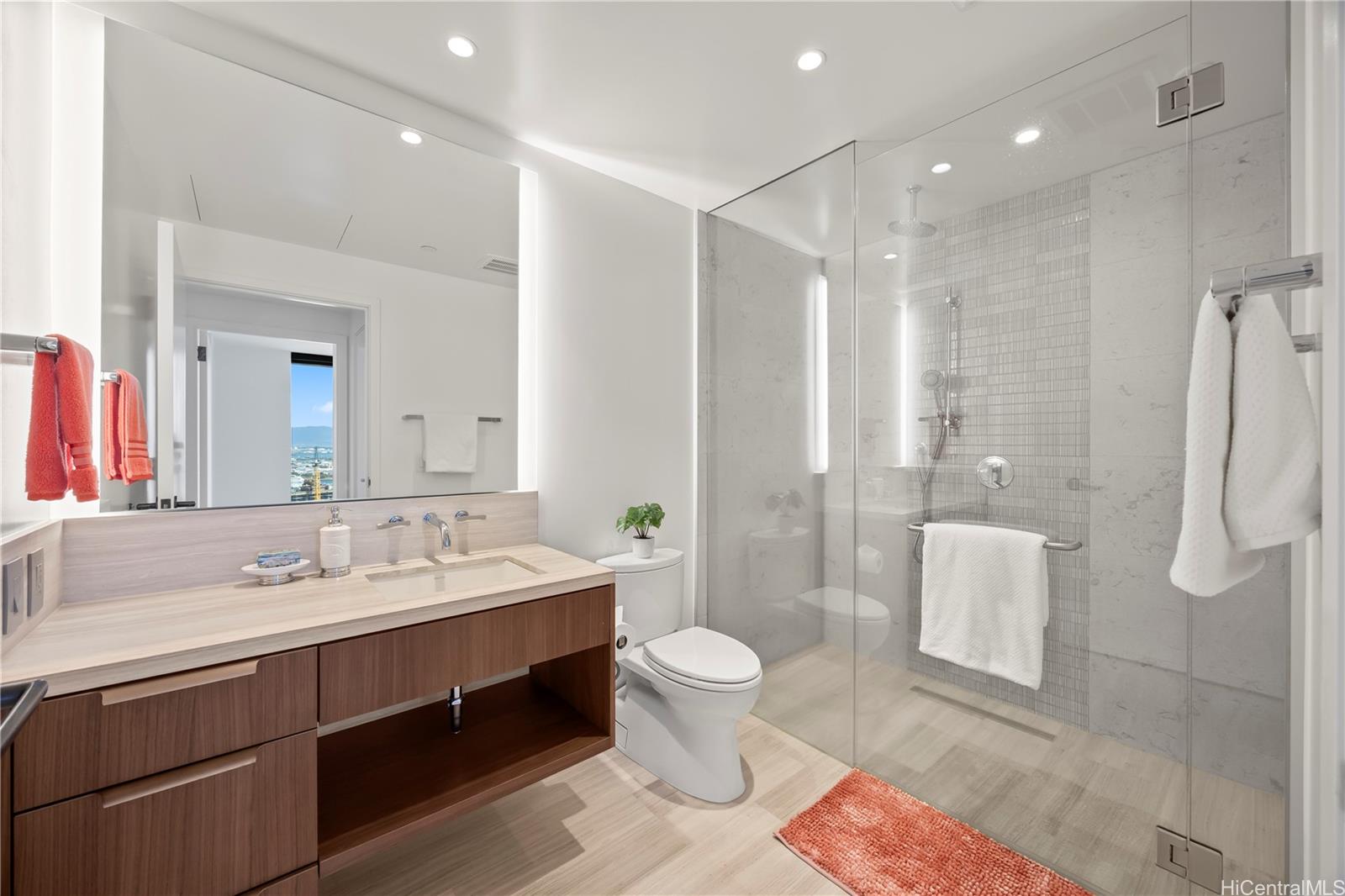 This stunning 2-bedroom, 2-bathroom residence situated on the 33rd floor of Victoria Place, the crown jewel of Ward Village. Unit #3303 offers a perfect blend of high-floor privacy and the vibrant Honolulu coastline.Spanning 2bed 2bath second row from the ocean, this residence features, premium appliances, and studio becker cabinet system the expansive floor-to-ceiling windows invite natural light open-concept living area, an, this residence features, premium appliances, and high end cabinet systems. Both bedrooms are designed as serene sanctuaries, with the primary suite offering breathtaking ocean views and a spa-inspired bathroom featuring premium finishes. Every detail in this unit has been thoughtfully crafted to provide the ultimate in modern luxury and comfort.As a resident of Victoria Place, you will enjoy unparalleled amenities, including the Lauhala Pool, infinity-edge sunrise and sunset pools, private cabanas, a state-of-the-art fitness center, and dedicated concierge services. Located in the heart of a walkable urban community, you are just steps away from world-class dining, shopping, and the golden sands of Ala Moana Beach.