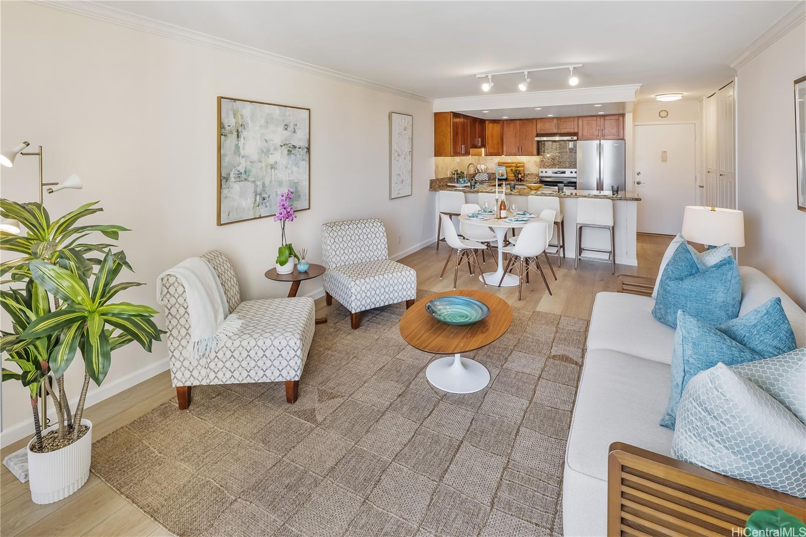 ヴィラ・オン・イートン・スクエアにある、美しく改装された1ベッドルーム・1バスルームのコンドミニアムで、本物のアロハの心を感じてみてください。 開放的な間取りが魅力の素敵な住まいです。 改装されたキッチンには、4人掛けのグラニット製アイランドカウンターがあり、ハードウッド製のキャビネットと新しいステンレス製の家電が備わっており、おもてなしに最適な空間となっています。 公開された 改装されたバスルームは、キッチンと調和するカウンターやキャビネットを採用しています。 収納スペースがたっぷりあり、新しい洗濯乾燥機も備わっています。 居住者の方々は、温水プール、サウナ、バーベキューエリア、フィットネスセンター、そして360度のパノラマビューを楽しめるヨガスタジオを備えた屋上レクリエーションデッキをご利用いただけます。 建物内に割り当てられていない専用駐車場が1台分含まれており、その他にもゲスト用または月額制の専用駐車場をご利用いただけます。 最高の利便性:外に出れば、食料品店、郵便局、銀行、そして和風ベーカリー&カフェが入った「イートン・スクエア」ショッピングモールがあります。 この建物には新しい運営チームが就任しており、皆様がまるで自宅のようにくつろげるよう、心を込めてお世話をいたします。 .