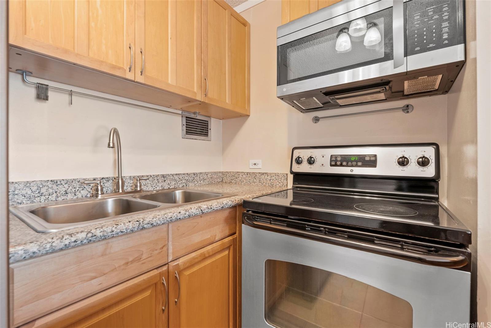 1BR/1BA Unit at Village Maluhia! This unit features a granite tops, newer refrigerator, laminate flooring, crown molding, in-unit washer/dryer, window a/c in bedroom, lanai and assigned parking. This building features a swimming pool, sauna, bbq, recreation area, whirlpool, and sundries store. This building is conveniently located in Makiki, minutes to downtown Honolulu, University of Hawaii, easy freeway access and more. Building has 100% hurricane coverage.