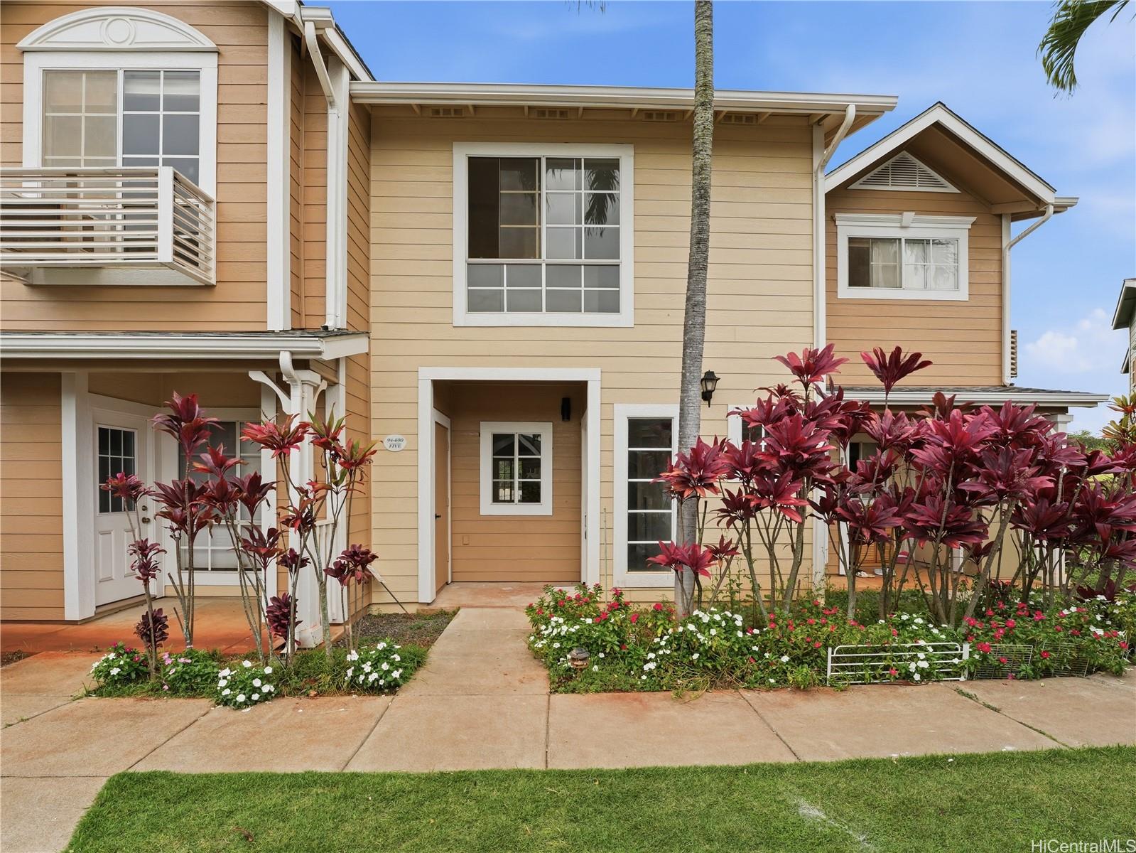 Welcome to this newly renovated home in the highly desired Village on the Green community in Waikele! This move-in ready property offers the perfect blend of comfort, convenience, and island living. This unit features a bright and open floor plan, two spacious bedrooms, a modern kitchen with new appliances, two and a half bathrooms, and a private outdoor lanai perfect for relaxing or entertaining. The unit also has two outdoor storage closets. Enjoy natural light, cool cross breezes, and thoughtful upgrades throughout. Located in Central Oahu, this property provides easy access to H-1 freeway, shopping centers, restaurants, schools, parks, and public transportation including the Sky Rail. Just minutes to Honolulu International Airport, Waikele Premium Outlets, Costco, and Pearl Harbor.