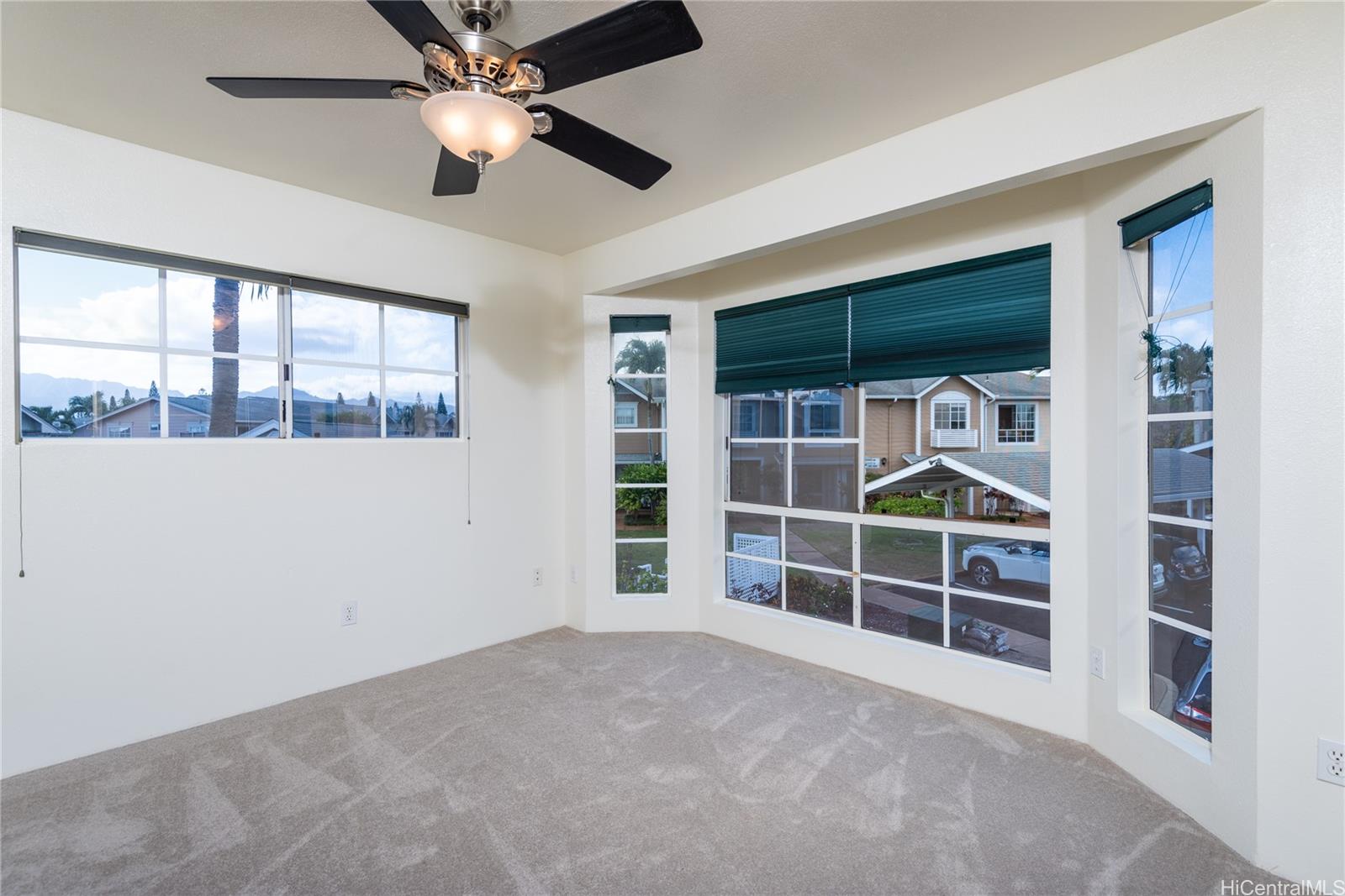 Huge price reduction! Rare 3 bedroom, 2 full bath, 1,029 sq. ft. condo at Village on the Green in Waikele. In addition, this 2nd floor unit offers a large 93 sq. ft. lanai with tree top views. Your 2 assigned, parking stalls, one covered, one open are located very close to your doorstep. This home has been newly painted, with brand new carpet throughout. New light fixtures an fans have been installed. AC in living room. All this in the planned community of Waikel with it’s golf course, Outlet Mall, restaurants and parks.Townhouse is in very good condition but being sold “as is”.