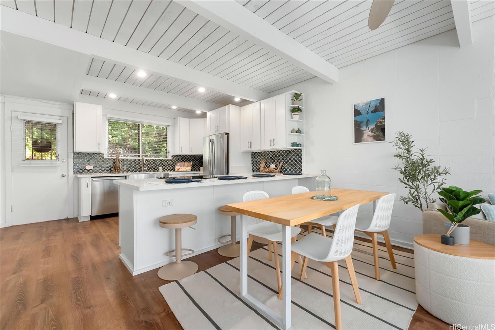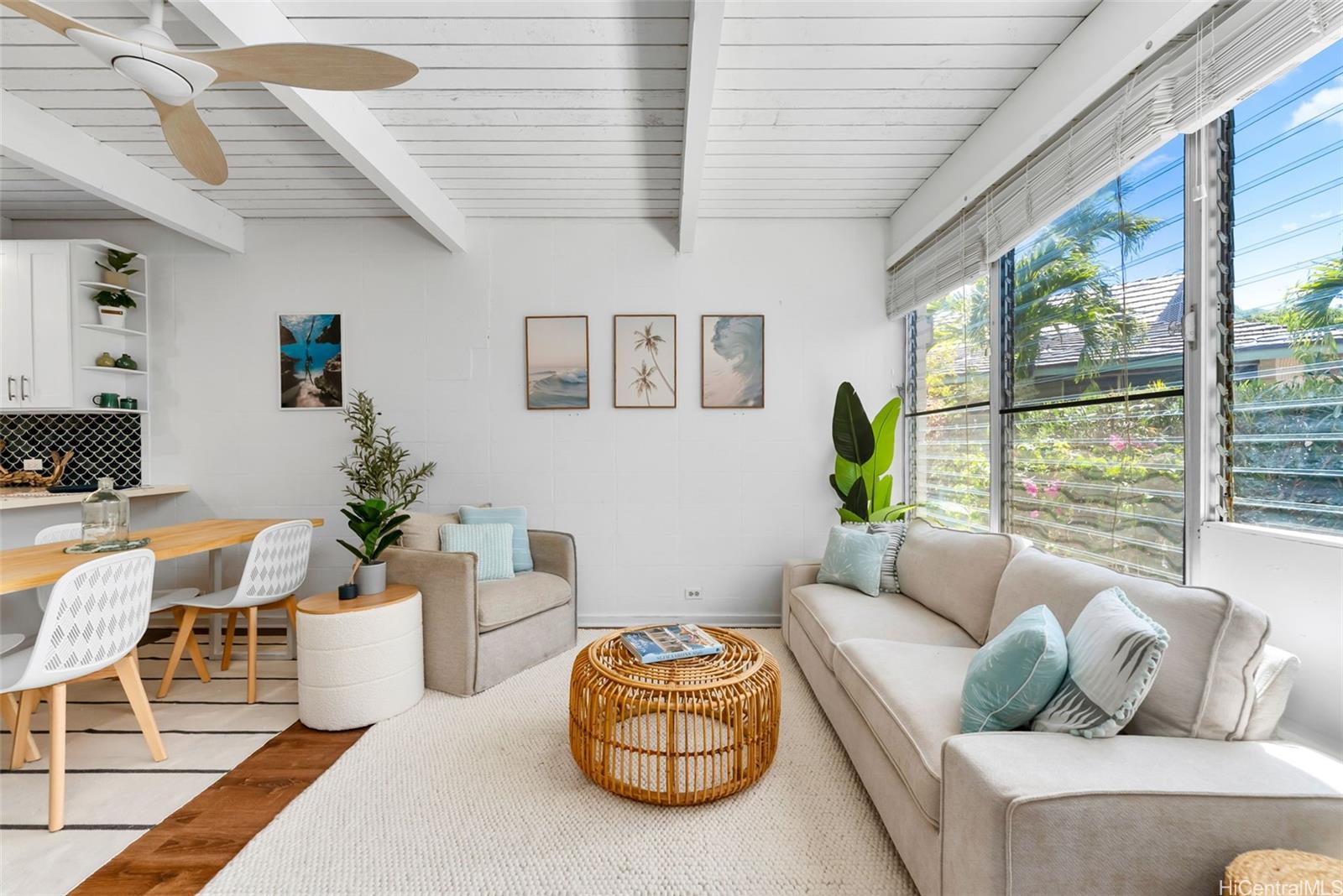 Step into this beautifully updated two-story townhouse offering 1,035 sq ft of inviting living space. As an end corner unit, it enjoys extra privacy, tons of natural light, and a cool breeze throughout the home. With 2 spacious bedrooms, 2 full baths, and 1 dedicated parking spot, it’s ideal for those seeking both comfort and convenience. The open-concept kitchen seamlessly connects to the living area, creating a welcoming flow that’s perfect for gatherings. Located just minutes from Kahala Mall and Ku‘ono Marketplace, plus easy access to major freeways, this home offers both comfort and an unbeatable location. Move-in ready and brimming with potential—don’t let this opportunity slip by!