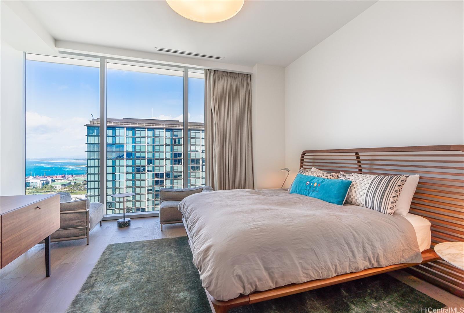 Waiea, the luxurious flagship building in the heart of vibrant Kakaako. This is a rare opportunity to own and reside in this expansivethree-bedroom penthouse residence, featuring a private elevator entry with an elegant foyer, a spacious den, three-and-one-half baths, and impeccable finishes throughout. Soaring 12-foot ceilings, Miele appliances, double glazed Low-E glass, motorized window shades, hardwood and stone flooring, and top-of-the-line plumbing fixtures by Dornbracht and Toto. Storage Room 3-15 is included. Enjoy world-class amenities including guest suites, a state-of-the-art fitness center with yoga room, steam sauna, golf simulator, infinity-edge ocean view pool, hot tub, children’s play area, and dog park, all complemented by exceptional building management and outstanding service provided by the building team. Ideally located near Whole Foods, Ward Village shops and restaurants, and Ala Moana Beach Park.