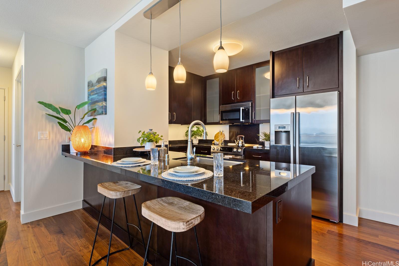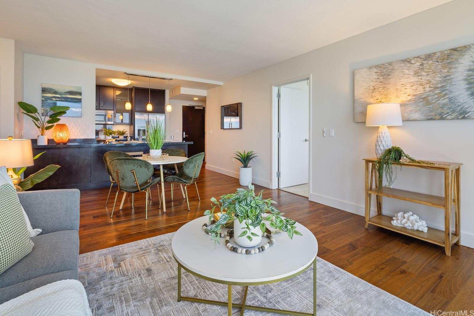 ワイホヌアの希少なラナイ付き2ベッドルーム、2バスレジデンスが驚きの新価格。 広さは1,000平方メートル以上。 この住宅は、モダンなデザイン、快適さ、スタイルが見事に融合している。 室内に一歩足を踏み入れると、リッチなハードウッドフロア、エレガントなカスタムキャビネット、床から天井まである窓、便利な自動シェードがある。 キッチンには、ボッシュのステンレス製電化製品、花崗岩のカウンタートップ、洗練された磁器タイルが使われている。 ワイホヌアの居住者は、スパカバナ付きのインフィニティエッジプール、フィットネスセンター、プライベートシアター、バーベキューパビリオンなど、充実したリゾートスタイルのアメニティをお楽しみいただけます。 また、豪華なクラブルーム、来客用のゲストスイート、十分な収納スペース、安心のセキュアエントランスも完備している。 ホノルルの中心部という理想的なロケーションにあり、アラモアナショッピングセンターやビーチパークからすぐ、ワードビレッジ、ワールドクラスのダイニング、エンターテイメント、活気あるビーチライフがすべて手に届くところにあります。 この特別なレジデンスは、利便性、豪華さ、アイランドライフが完璧に融合している。 ペットにも優しい。