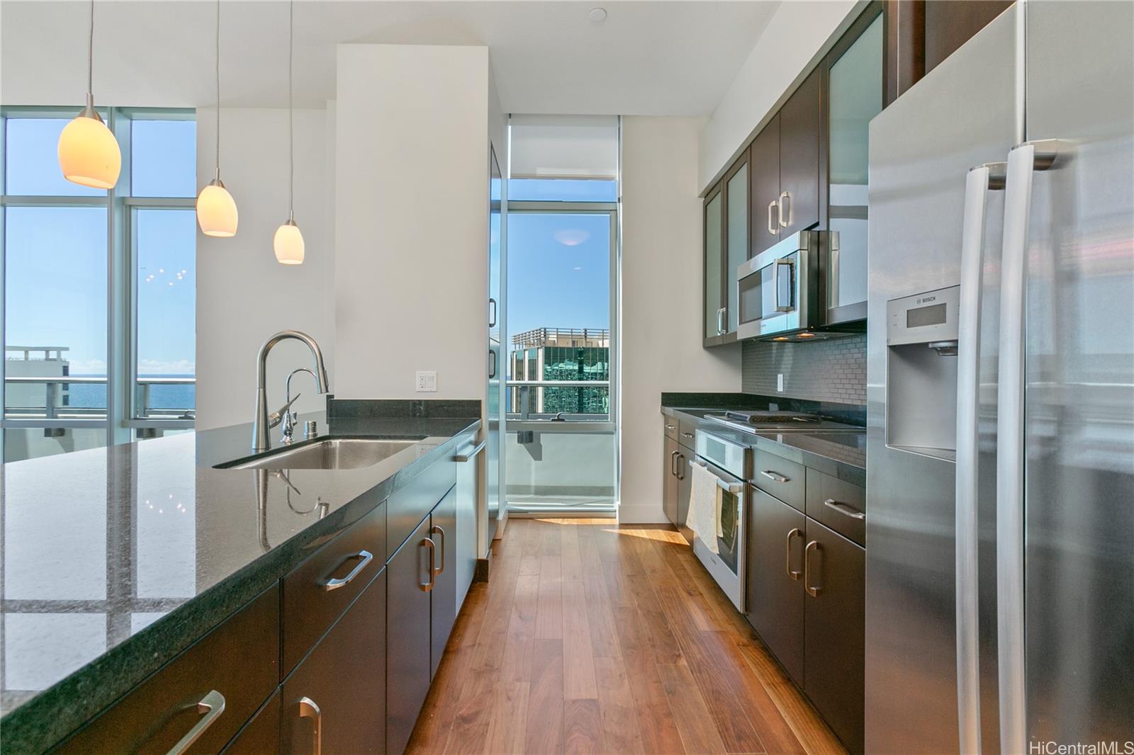 めったに出回らない角部屋!ホノルルの中心部に位置するこの素晴らしいペントハウスコンドミニアムで、ラグジュアリーな暮らしの極みを発見してください。 ダイヤモンドヘッドと輝く海の息をのむような景色を望む、この洗練された邸宅には、広々としたベッドルームが3室と、優雅にデザインされたバスルームが3室備わっています。 広々としたラナイは、魅惑的な日の出と穏やかな海風を楽しむのに最適な舞台を提供します。 室内には、高さ約3.35メートルの高い天井が設けられ、大きな窓から自然光がたっぷりと差し込み、あらゆる角度からパノラマビューを楽しめます。 このペントハウスは料理愛好家の夢の空間であり、花崗岩のカウンタートップ、ワイン冷蔵庫、高級家電を備えたシェフ仕様のキッチンを特徴としています。 全室に敷かれた堅木張りの床が洗練された雰囲気を添え、プライバシーとスタイルを兼ね備えた特注の電動シェードがそれを引き立てています。 この豪華なコンドミニアムの居住者は、最高級の設備を享受できます。リフレッシュできるプール、リラックスできるサウナ、最新鋭のフィットネスセンター、そしておもてなしに最適なバーベキュー施設などが揃っています。 究極のハワイアン・ラグジュアリーライフを体験してください -写真はバーチャルステージングされています。 .