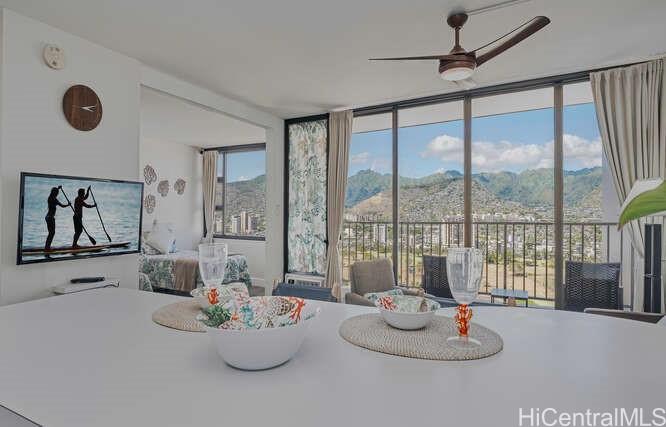 This beautiful mountain and golf course with Sparkling city lights at night. No building in front so the sense of openness and natural sunlight creates a refreshing and uplifting experience. Located just a block away from famous Waikiki Beach, you can enjoy nearby world-class restaurants and shopping. The City Bus and Tour Buses are just steps away making getting around Waikiki easy.The Waikiki Banyan is a popular vacation rental destination. The application to renew the current Nonconforming Use Certificate (NUC) permitting daily rentals has been APPROVED through September 30, 2026. There are several vacation rental companies operating on site but there are many other options for property managers or do-it-yourself owners.Amenities include a heated pool, whirlpool, tennis court, BBQs, saunas and a children’s play area. There is a community laundry on each floor and 24/7 building Security. Additional storage may be available to rent. New appliances installed and the “popcorn” ceiling was removed in 2025.