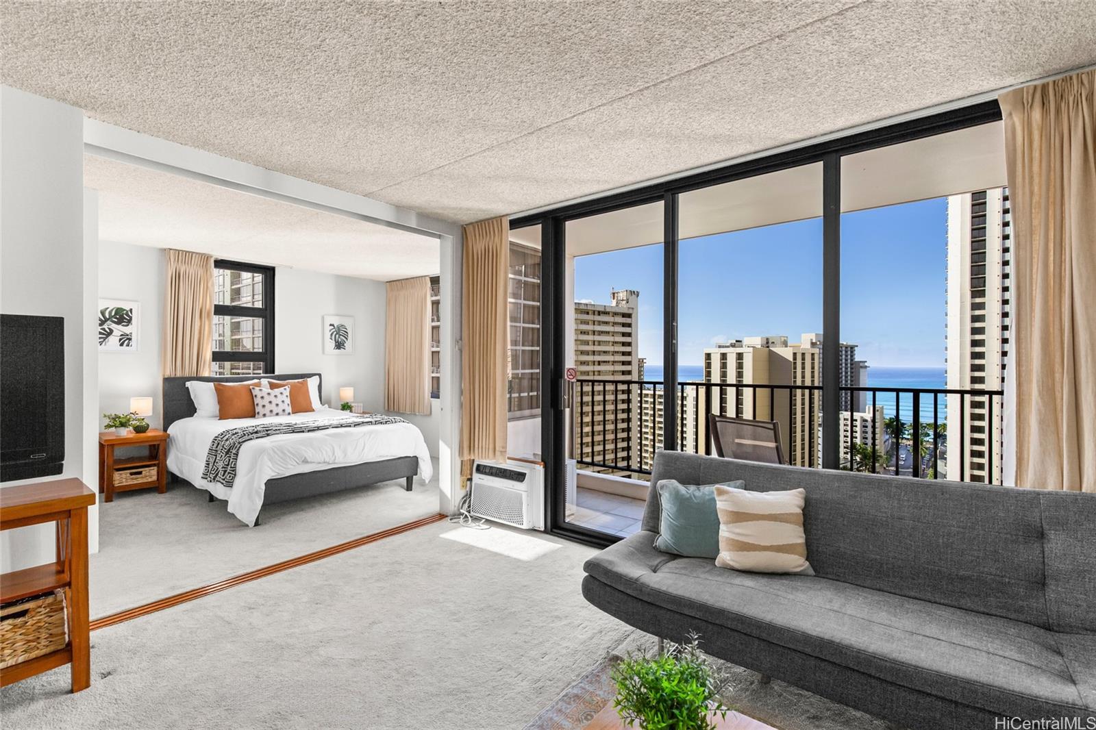 Waikiki Banyan #2114-2 presents an exceptional opportunity for investors, second-home buyers, or those seeking a primary residence in the heart of Waikiki. Located in the highly desirable 14-stack of the Mauka Tower, this extra-large corner-end unit features one of the most sought-after floor plans in the building. Enjoy direct ocean views along with additional windows that fill the space with natural light and showcase iconic vistas of Diamond Head and Waikiki Beach. Offered at a competitive price, the unit is in good condition, also awaits your personal touch, and offers excellent potential for customization. Included is one unassigned parking stall—a valuable convenience in this prime Waikiki location. The Waikiki Banyan is well-managed and financially solid, with notable recent upgrades including repiping of sewer lines, ongoing recreation deck renovations, and modernized elevators. Just steps from Waikiki Beach, dining, shopping, and endless island activities, this unit delivers both flexibility and value in a popular short-term rental–friendly building.