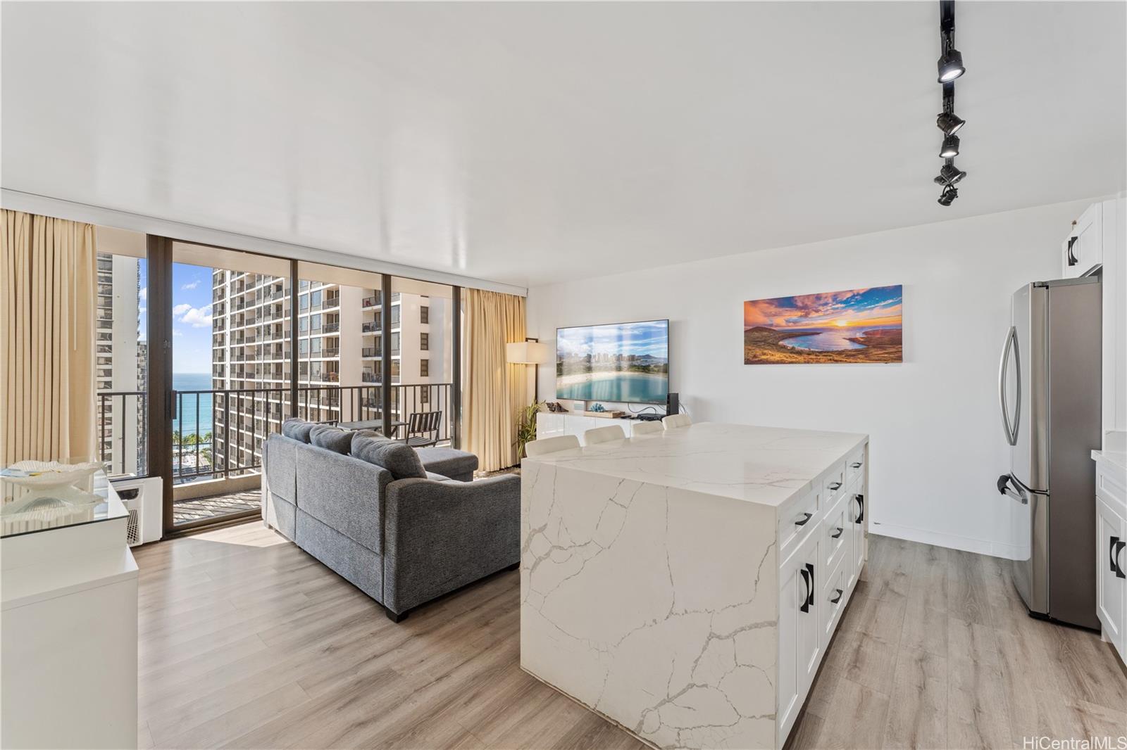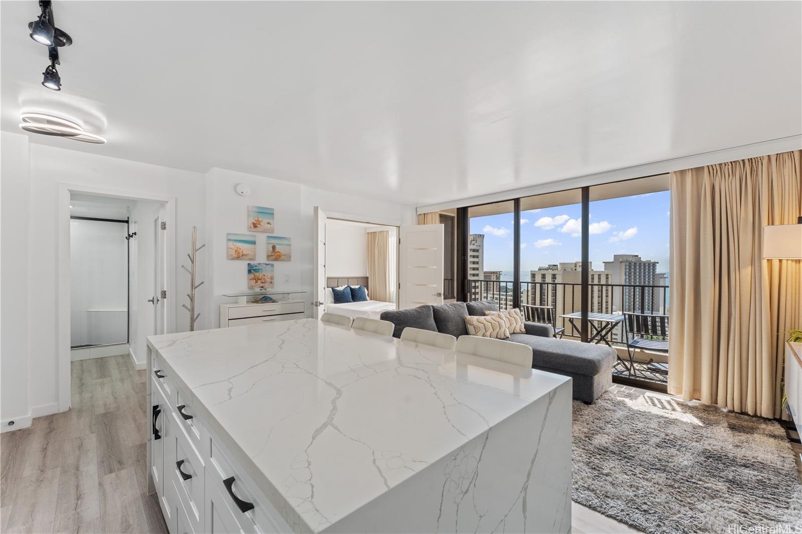 人気のワイキキ・バニアンの高層階に位置するこの美しく改装された1ベッドルーム・1バスルームの住居は、涼しい島の風と心地よい海の眺めを捉え、高みから眺めるワイキキの生活体験を提供します。 洗練されたインテリアデザインは、モダンな仕上げ、豊かな自然光、そしてくつろぎと歓待の両方に最適な快適なレイアウトを特徴としています。 この物件は合法的な短期賃貸物件であり、高い賃貸収益性を求める投資家にとって、個人利用も楽しめる絶好の機会です。 居住者はリゾートスタイルの設備を享受できます。プール、ジャグジー、サウナ、バーベキューエリア、テニスコート、敷地内ランドリー、24時間セキュリティなどが含まれます。 世界的に有名なワイキキビーチ、カピオラニ公園、ダイヤモンドヘッド、そして数多くの飲食店、ショッピング施設、娯楽施設からわずか数分の理想的なロケーションに位置する当物件は、ワイキキの中心部における主要な居住地、休暇用別荘、あるいは収益を生み出す投資物件として最適です。 .