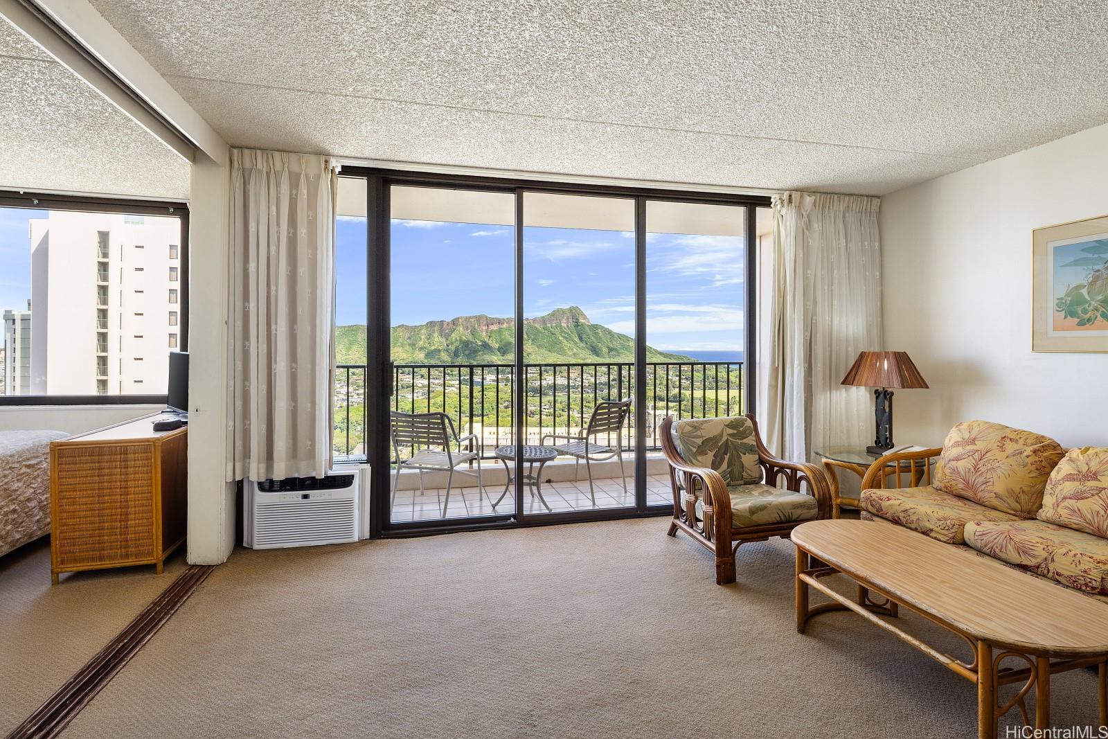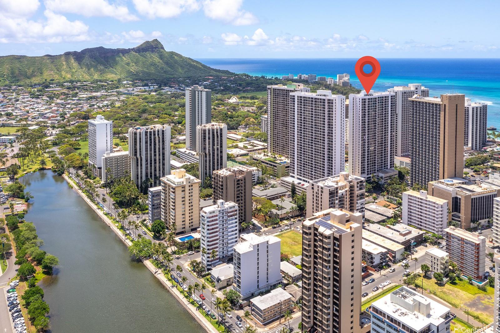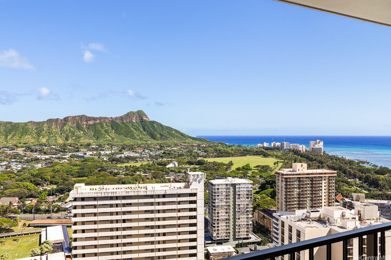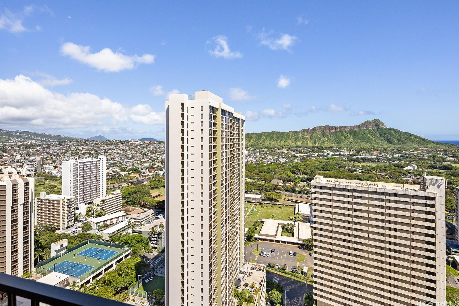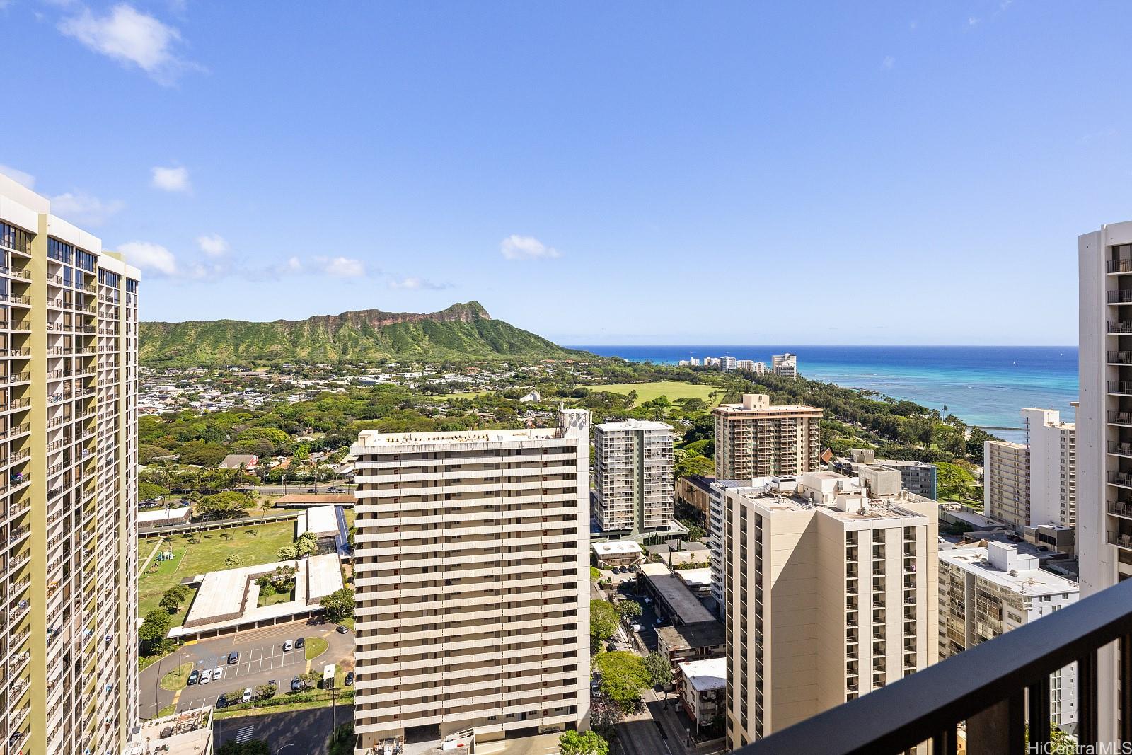 Experience one of the most desirable views in Waikiki Banyan from this high-floor unit, featuring breathtaking panoramic views of iconic Diamond Head, the lush greenery of Kapiolani Park, and the brilliant blue Pacific Ocean, an unforgettable island backdrop.The 6th floor recreation deck is currently undergoing a major renovation and is scheduled to reopen in late May, offering brand-new amenities including a swimming pool, BBQ areas, and courts for tennis and basket ball. Best of all, the renovation costs have already been budgeted, and no special assessment is anticipated. This unit is currently enrolled in the Aston hotel rental program, allowing for seamless short-term rental operation when not in personal use, ideal for both investors and part-time residents. Maintenance fees are reasonable and include electricity, water, hot water, cable TV, and internet, providing excellent value and convenience. Don’t miss this rare opportunity to own a premier view unit in the heart of Waikiki!