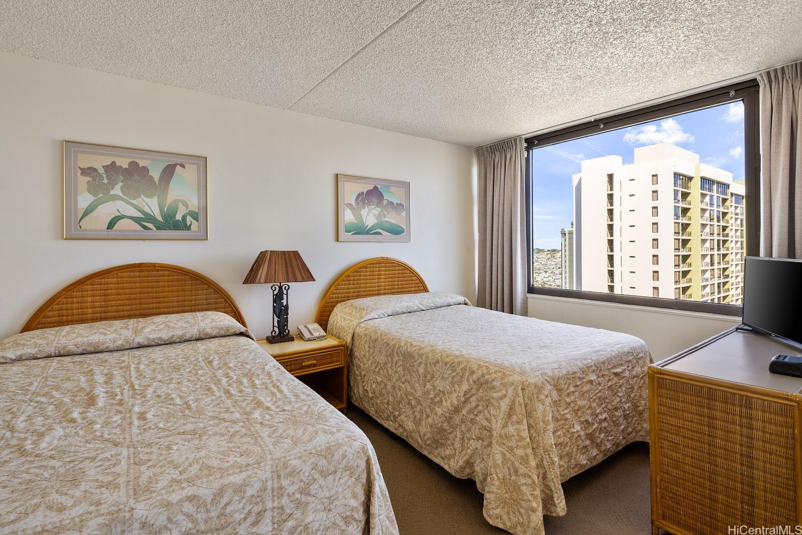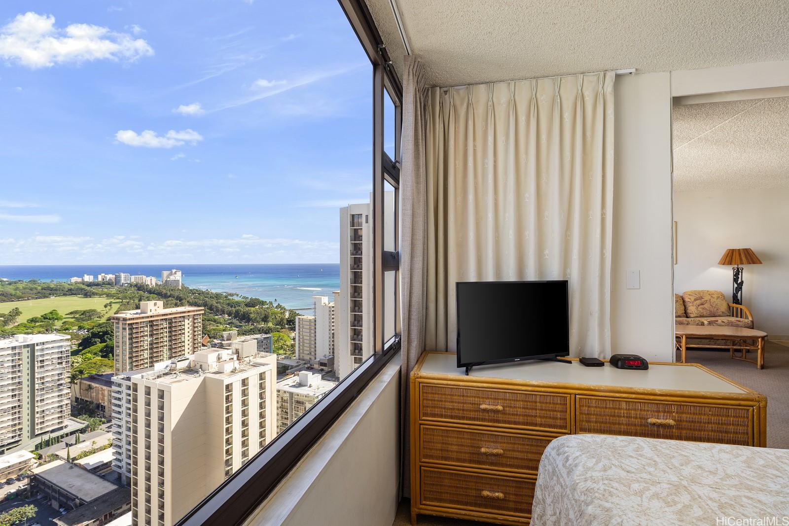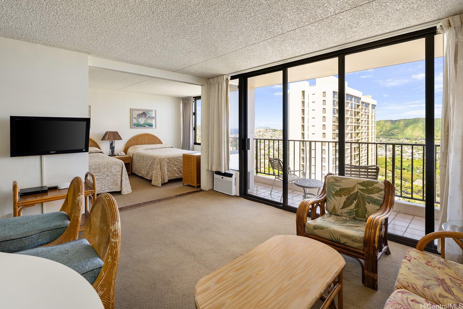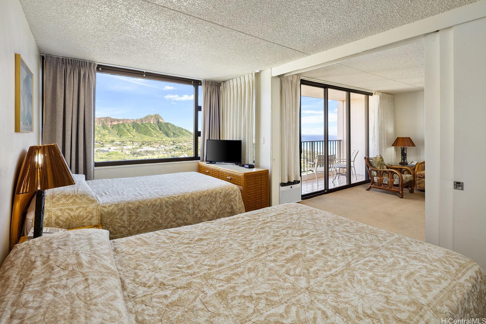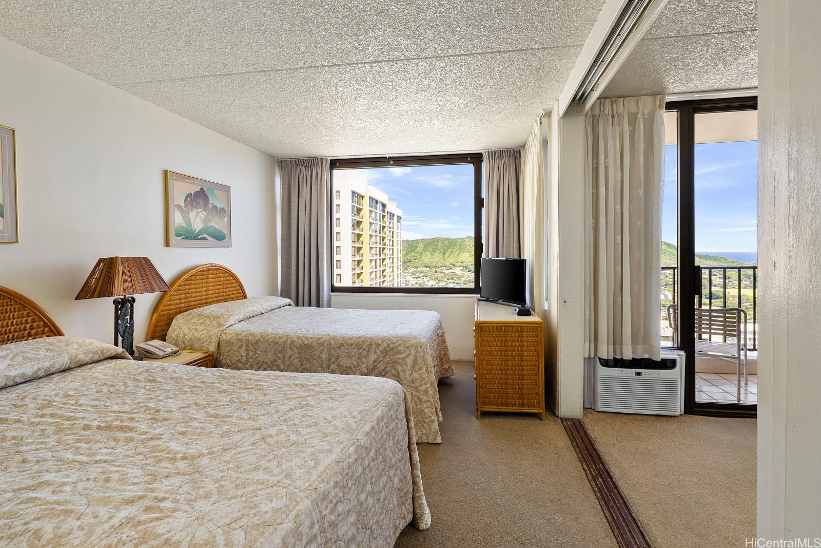 Experience one of the most desirable views in Waikiki Banyan from this high-floor unit, featuring breathtaking panoramic views of iconic Diamond Head, the lush greenery of Kapiolani Park, and the brilliant blue Pacific Ocean, an unforgettable island backdrop.The 6th floor recreation deck is currently undergoing a major renovation and is scheduled to reopen in late May, offering brand-new amenities including a swimming pool, BBQ areas, and courts for tennis and basket ball. Best of all, the renovation costs have already been budgeted, and no special assessment is anticipated. This unit is currently enrolled in the Aston hotel rental program, allowing for seamless short-term rental operation when not in personal use, ideal for both investors and part-time residents. Maintenance fees are reasonable and include electricity, water, hot water, cable TV, and internet, providing excellent value and convenience. Don’t miss this rare opportunity to own a premier view unit in the heart of Waikiki!